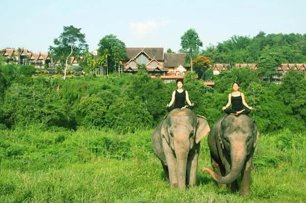 Hotellet Antara Golden Triangle Elephant Camp & Resort i Thailand er et av hotellene som tilbyr service litt utenom det vanlig – nemlig yoga på elefanter. Det er selvfølgelig yogainstruktører på stedet som hjelper gjestene med å balansere og praktisere enkle yogaposisjoner på disse fantastiske dyrene, men en mer spektakulær yogaopplevelse skal man lete lenge etter. Golden Triangle Asian Elephants Foundation, som er eid av hotellet, tar inn misbrukte elefanter og hjelper dem med pleie og å gi de et nytt liv.