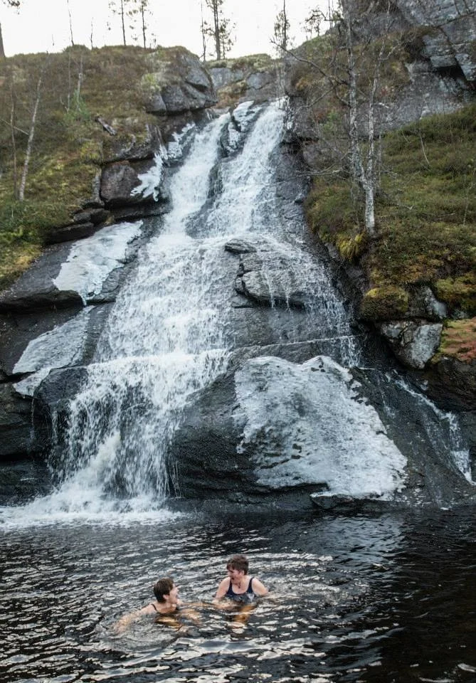 Og her et et bilde fra Trollheimen, november 2014. Badedamene, Bodil Strand og Mette Saari, badet i en kulp og tempen var på 0 grader. Iskaldt, men de gjorde det. Foto: Kjetil Strand