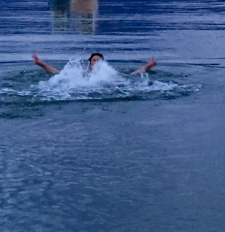 Her et bilde av BadeMette (Mette Saari),en av Badedamene. Et sensommerbad i Trondheim. Foto: Kjetil Strand