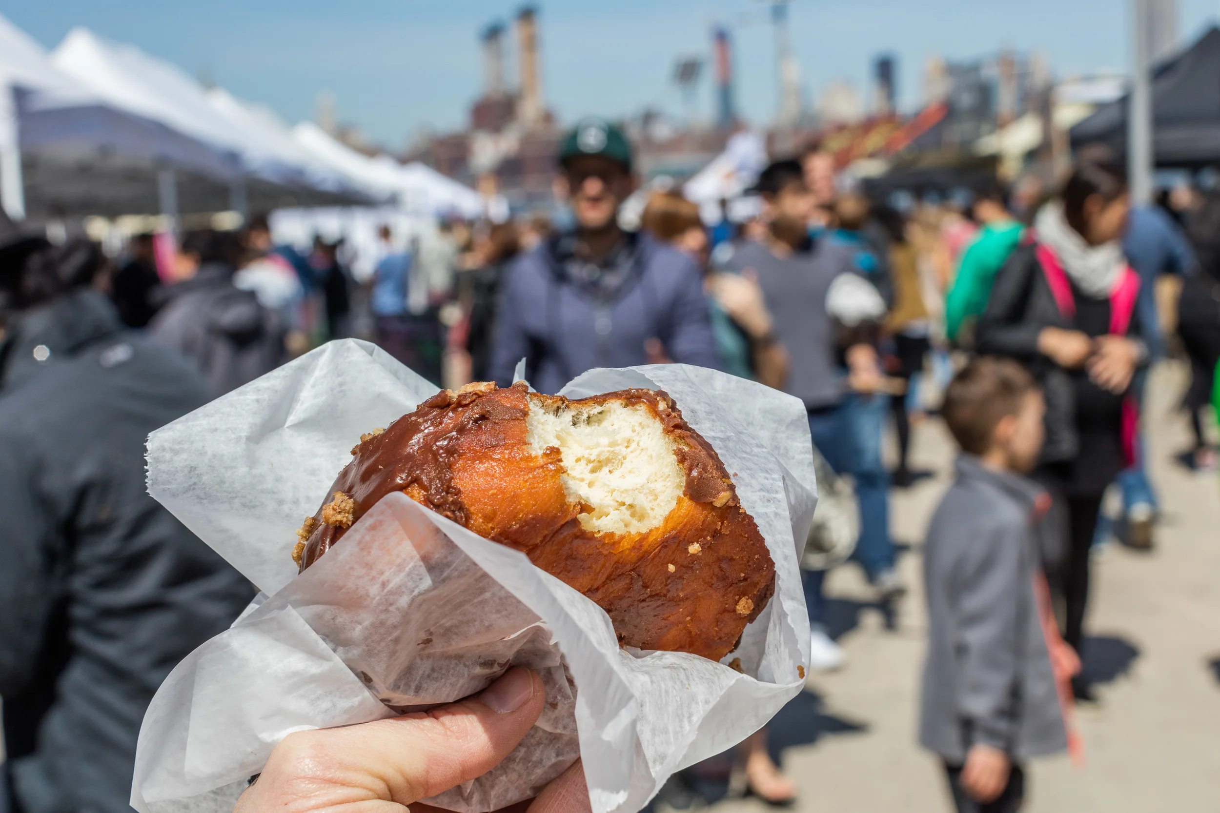 Av Sven-Erik Knoff for Thetravelinspector: Hver lørdag er det duket for Smorgasburg, et utendørs matmarked på et område nord i Williamsburg i East River State Park med rundt 100 boder med alle tenkelige smaker. Og dette er populært. Det var lang kø med mennesker allerede 15 minutter før åpning, og en time etterpå var det svært travelt og lange køer ved de mest populære bodene. Det var ikke vanskelig å få med seg hva som er de hippeste mat-trendene for tiden, det var noen få boder hvor køene var enormt lange.