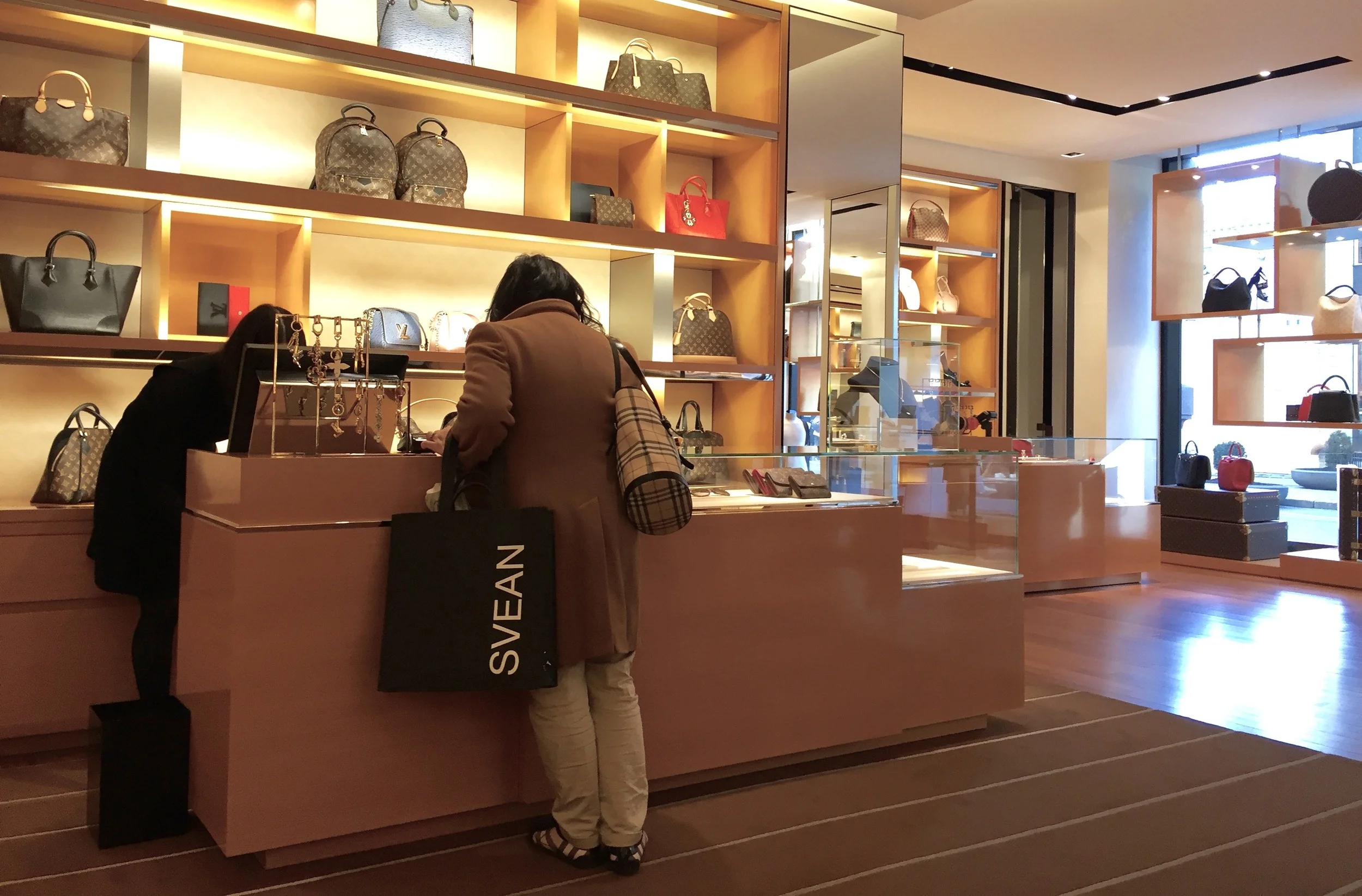 1) Hvor mange butikker som selger Burberry, Louis Vuitton, Cartier, Hugo Boss, Prada, Chanel, Hermés, Gucci, Fendi og Monthblanc som finnes i byen.