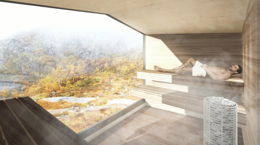Badstu i slike omgivelser ville vært av det spektakulære slaget. Alle illustrasjoner: Koko Arkitekter.