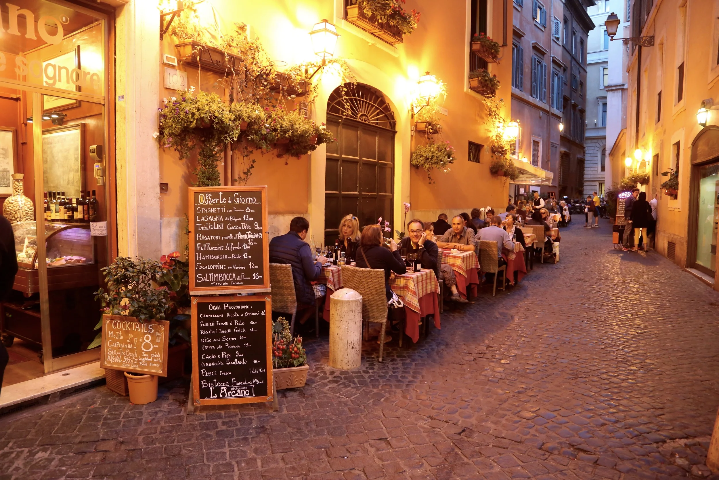 2) Steder å spise. Roma er smekkfull av restauranter. Og som for alle storbyer gjelder følgende regel: Jo mer turiststrøk, jo høyere pris - men ikke nødvendigvis høyere kvalitet. Gå heller inn i en av sidegatene og finn et sted hvor de lokale oppholder seg. Et godt tips er å dra til bydelen Trastevere. Her finner du restauranter utenfor den største turistløype og hvor de lokale henger. Fra Hotel Una vil det koste ca 100 kroner i taxi hver vei. Noen bonustips er kaffe på Antico Caffè Greco, Aperitivo (aperitiff) på Stravinskij Bar (Hotel De Russie), middag på La Pergola (Hotel Rome Cavalieri med tre stjerner i Michelinguiden (husk å bestille bord) eller på Il Pagliaccio som har to Michelin-stjerner.