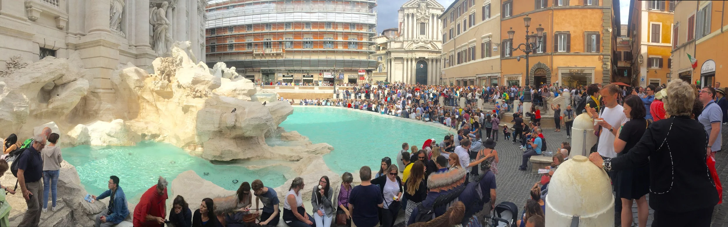 Nei, du er aldri alene ved Trevifontenen. Og, se opp for lommetyver. Foto: Odd Roar Lange