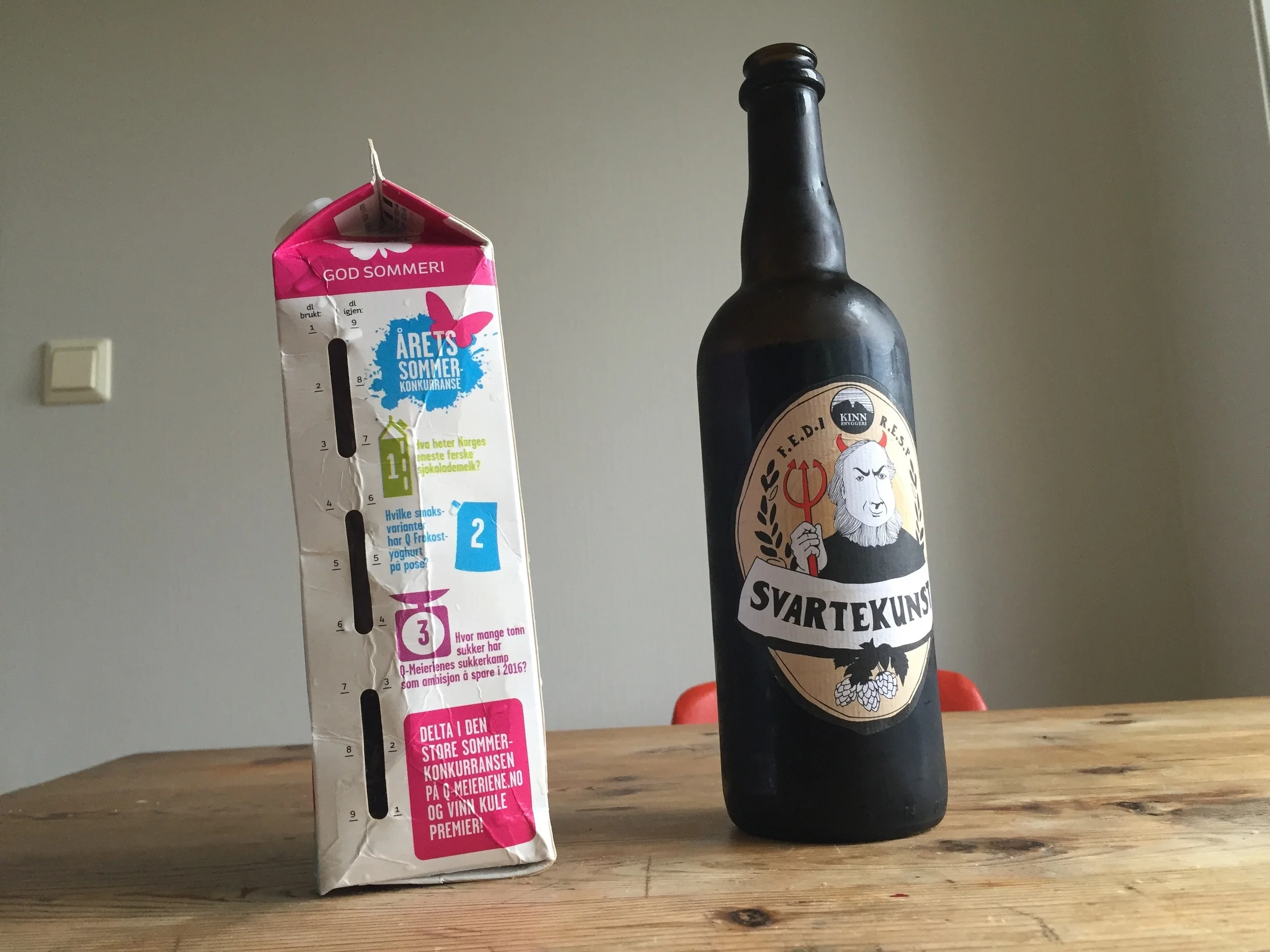 Legg melkekartongen(-e) i hagen. Husk at de skal ligge slik at innholdet ikke renner ut.