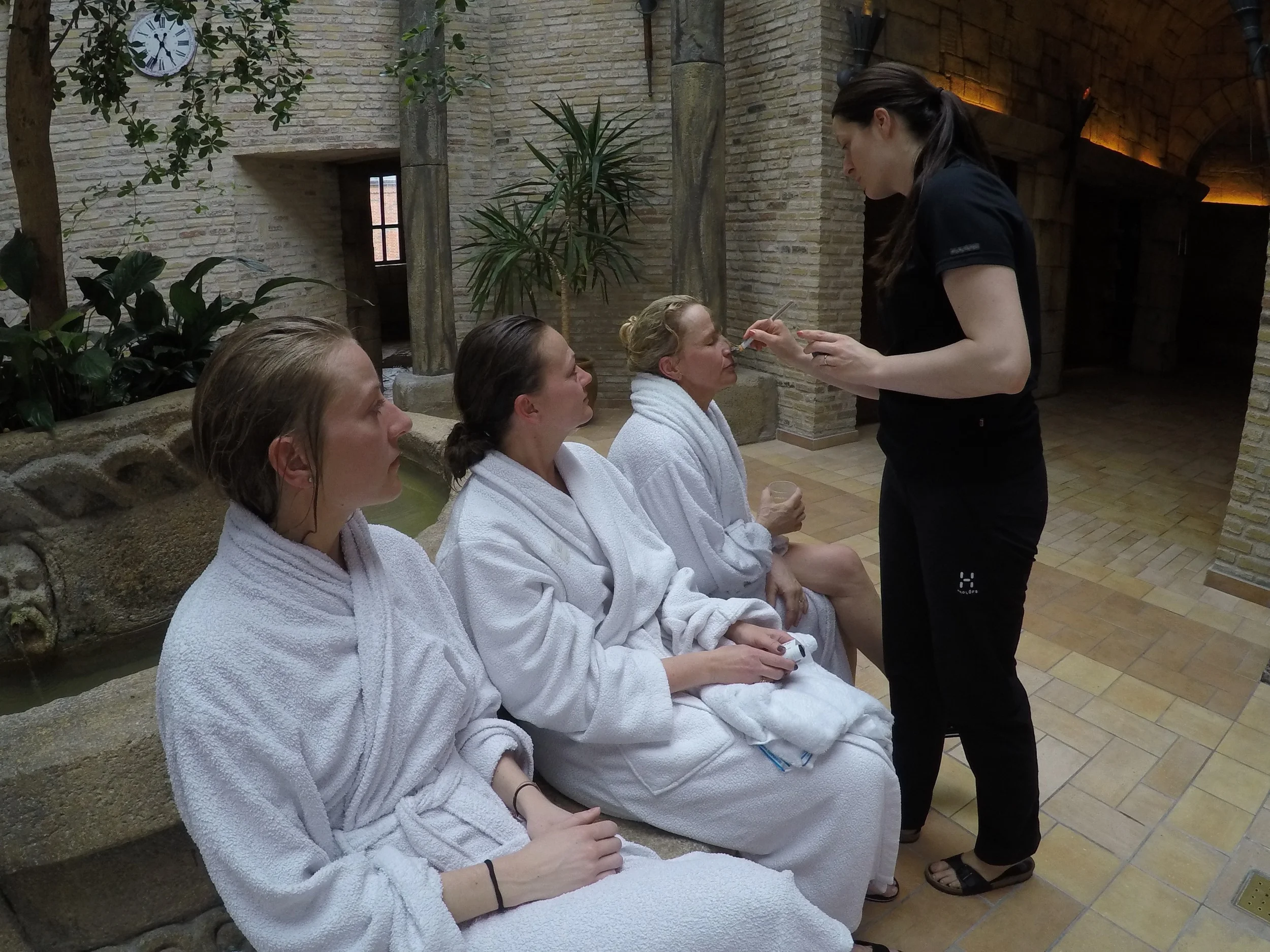 Og Romulus Spa er stedet du skal sette av noen timer. Enten det er for å prøve ansiktsmaske og kroppsleire, massasje, eller badstu med saunagus - eller mye annet fra menyen. Saunagus er en opplevelse der saunaverten bruker håndkle og vann for å få mer damp i saunaen og sørger for å blåse denne mot hver enkelt gjest. Det er mildt sagt dampende hett.