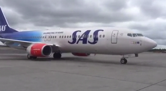 Flyselskapet SAS feirer år 70 år. Onsdag formiddag kom det første flyet i ny jubileuomsdesign fra Atlanda til Oslo. Her kan du se ankomsten til Gardermoen, filmet av pressesjef Knut Morten Johansen i SAS.