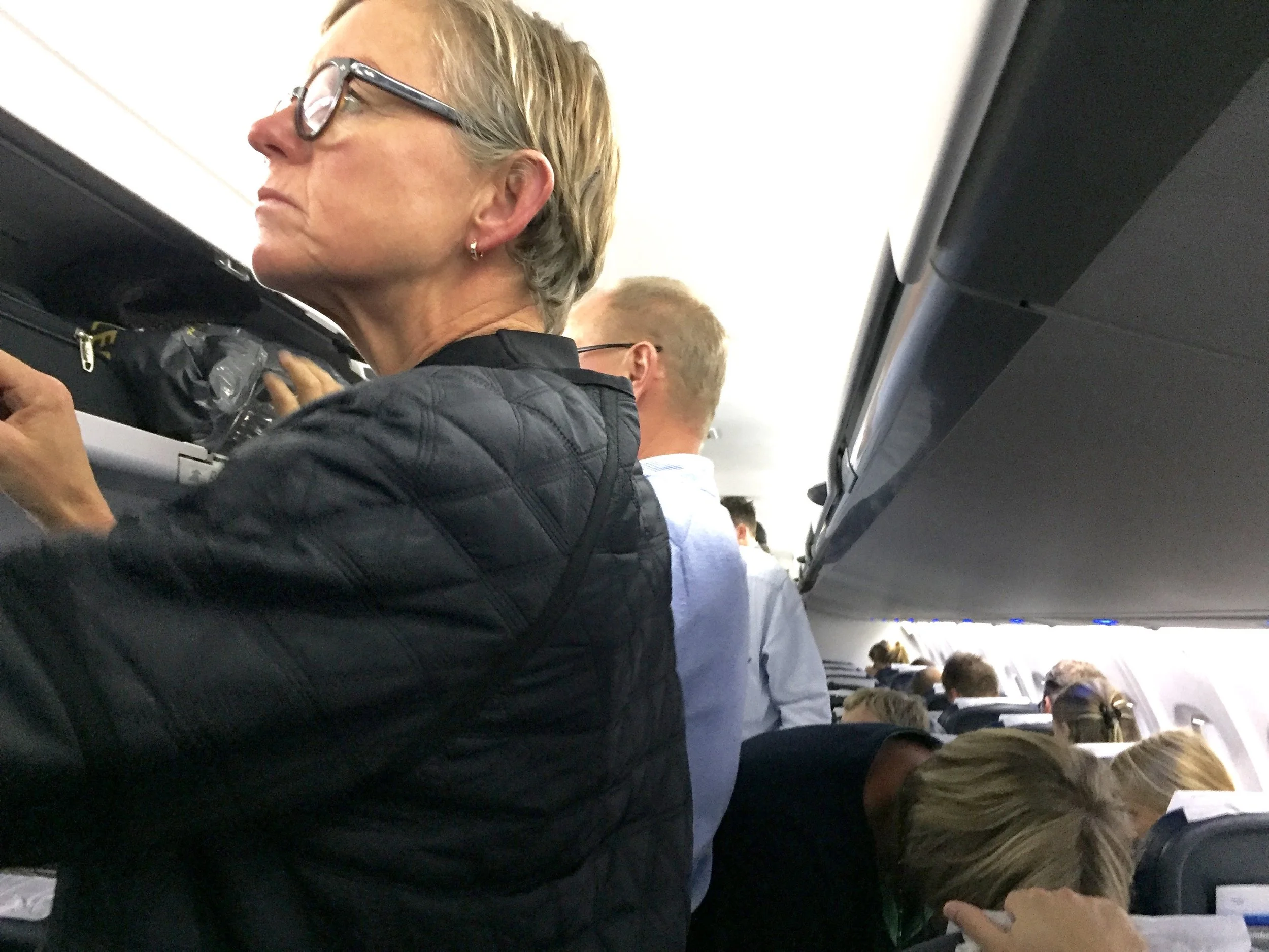 Jeg har noen ganger - ganske mange, når jeg tenker meg om - prøvd å sitte rolig, reise meg når det er plass og ta ned håndbagasjen uten å rive ned annen bagasje fra bagasjehyllen.