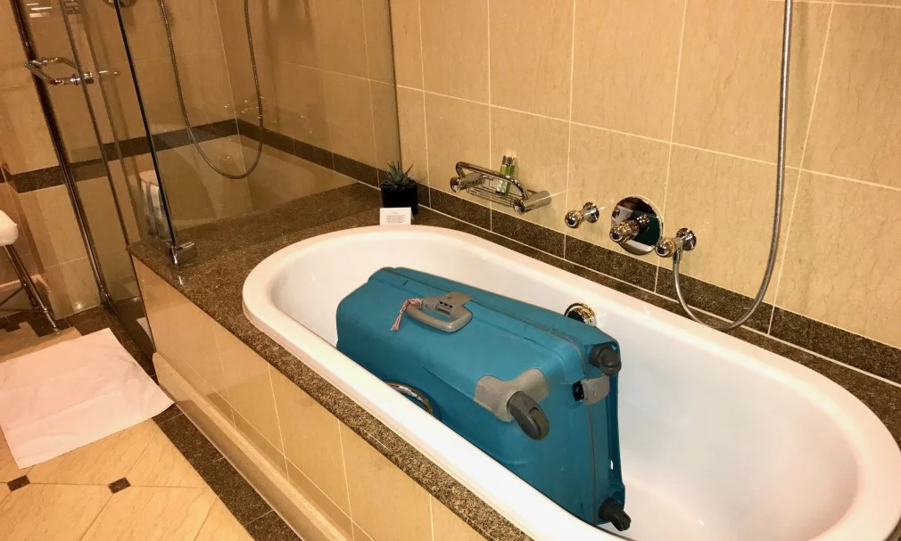 Legg kofferten din her til du har fått sjekket senga for eventuelle veggedyr. Da gjerne kofferten stå på badet under hele hotelloppholdet. Foto: Odd Roar Lange