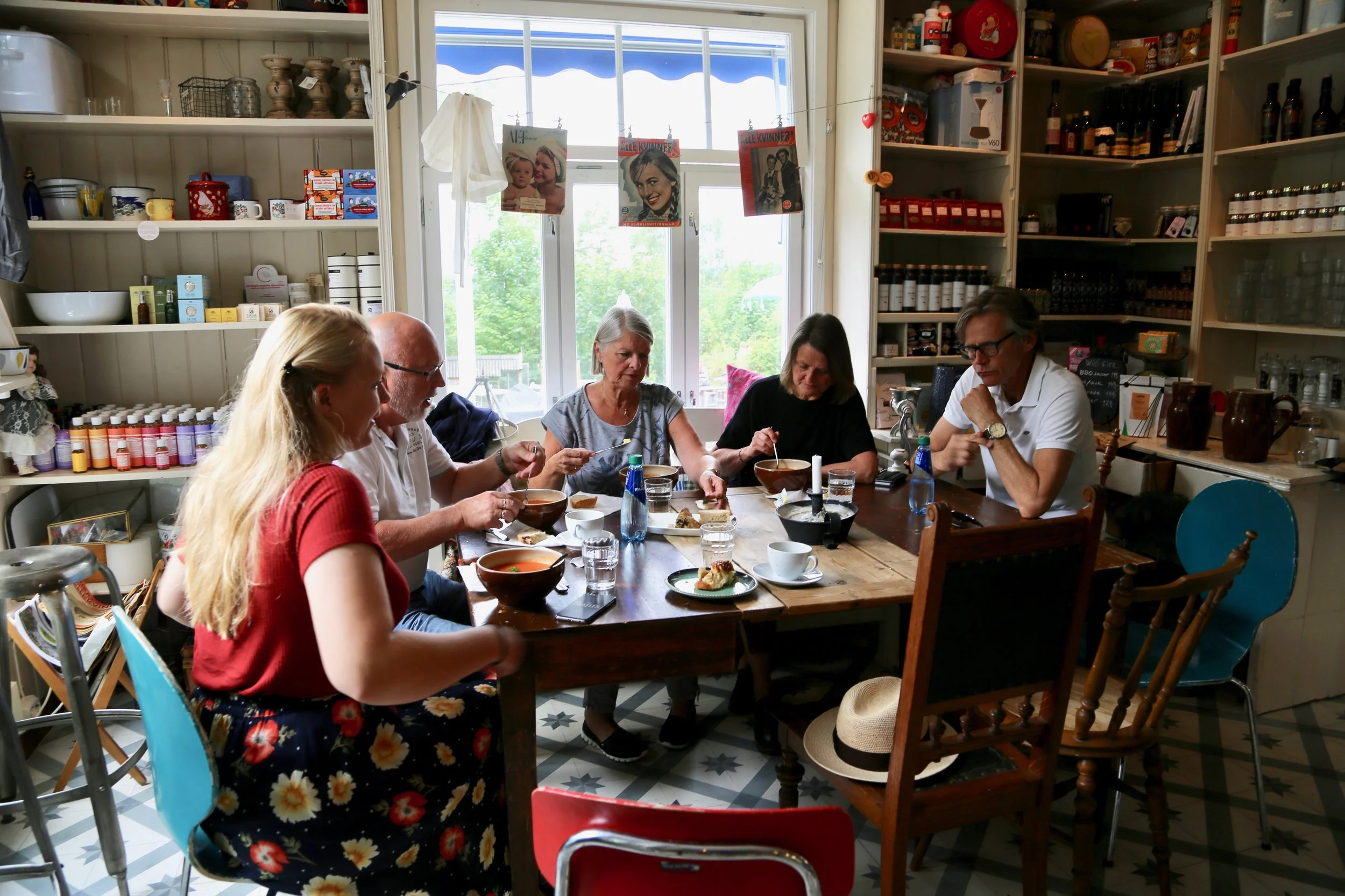 God lunsjstemning rundt bordet på Svartskog landhanderi. Foto: Odd Roar Lange