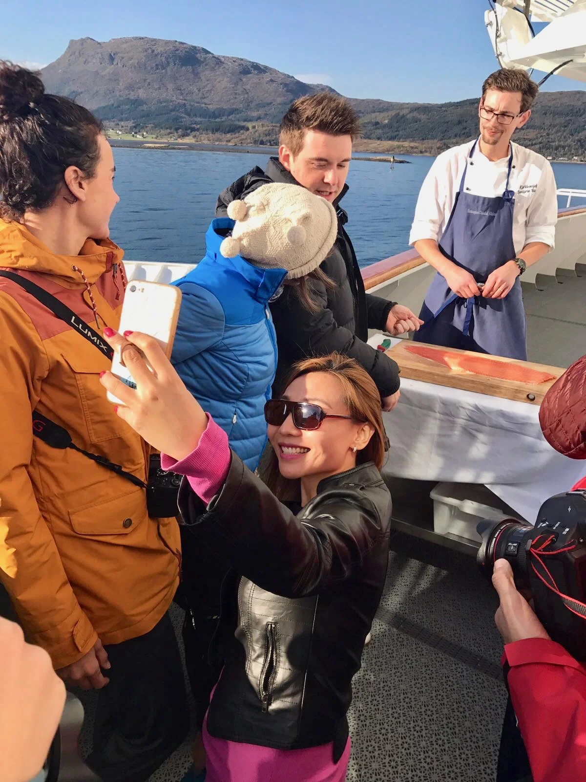 Kinesiske journalister, som Miao Shan, besøker gjerne Norge for å skrive hjem om opplevelser - som her fra Hurtigruten. Foto: Odd Roar Lange