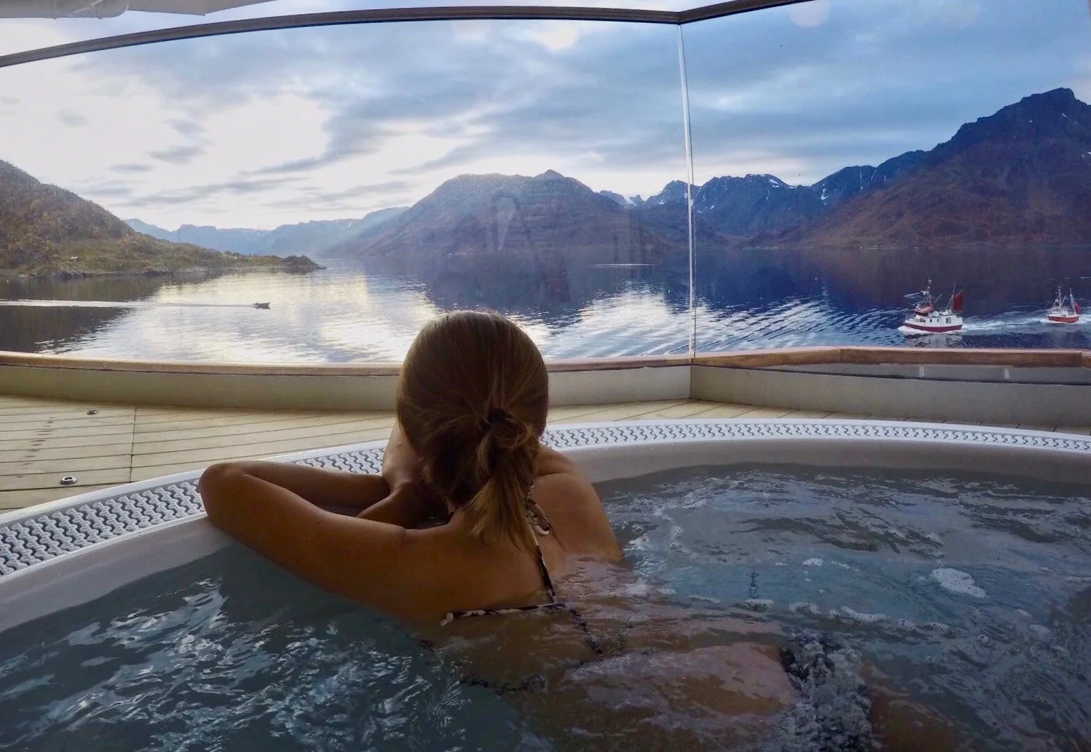 Flere av skipene har basseng, hvor du kan oppleve fine naturopplevelser når skipet seiler avgårde.
