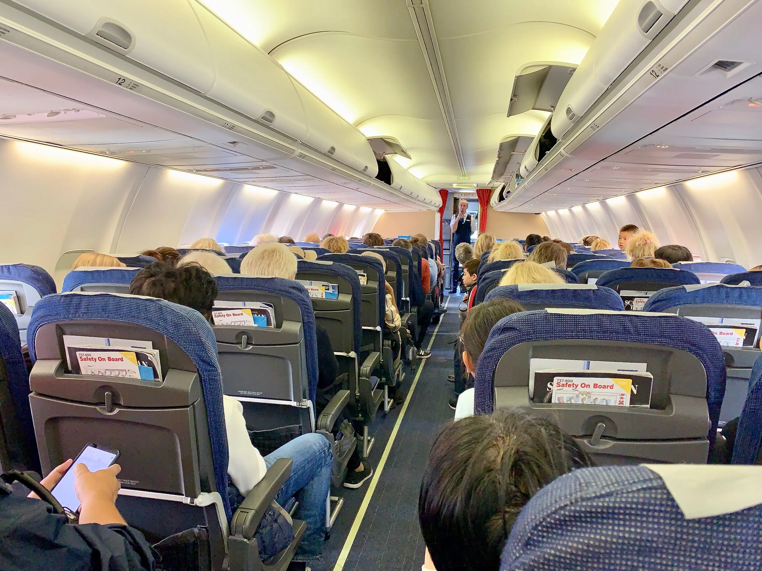 3) Fordelen med å sitte i den bakerste delen er åpenbar. Nå sitter du nær serveringsvogna med ekstra småflasker med vodka eller rødvin. Eller, om du har glemt å kjøpe noe mens salgsvogna trillet forbi, så er det enkelt å be kabinpersonalet om «ekstra åpningstid».