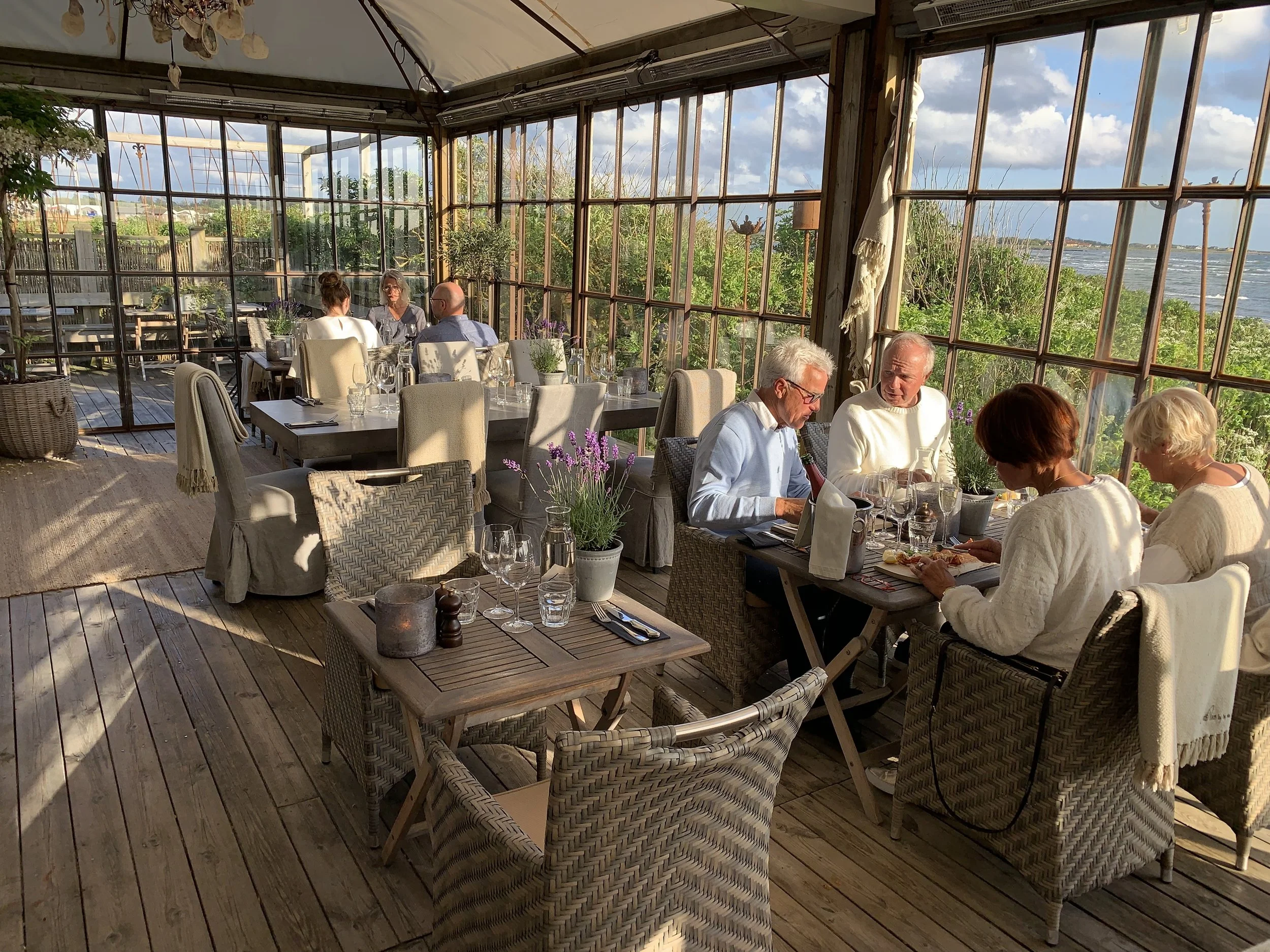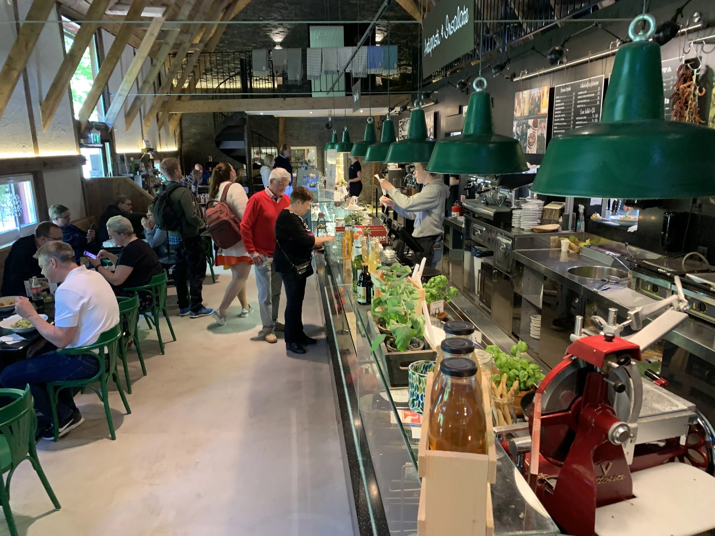 Langs veien passerer du hyggelige byer som blant annet Falkenberg, Varberg, Halmstad og Båstad - og min reise startet i Kungsbacka. En veldig hyggelig by, en halvtimes togtur fra Göteborg, med fine små butikker, en deilig park midt i byen - og et stort torg hvor det kan være et yrende liv på sommerstid. Nå kan det være tid for lunsj. Da bør du ta en kikk på restaurant Cosa Table. Det er smart å bestille bord på forhold, for her er det ofte fullbooket. Og det er ikke rart.
