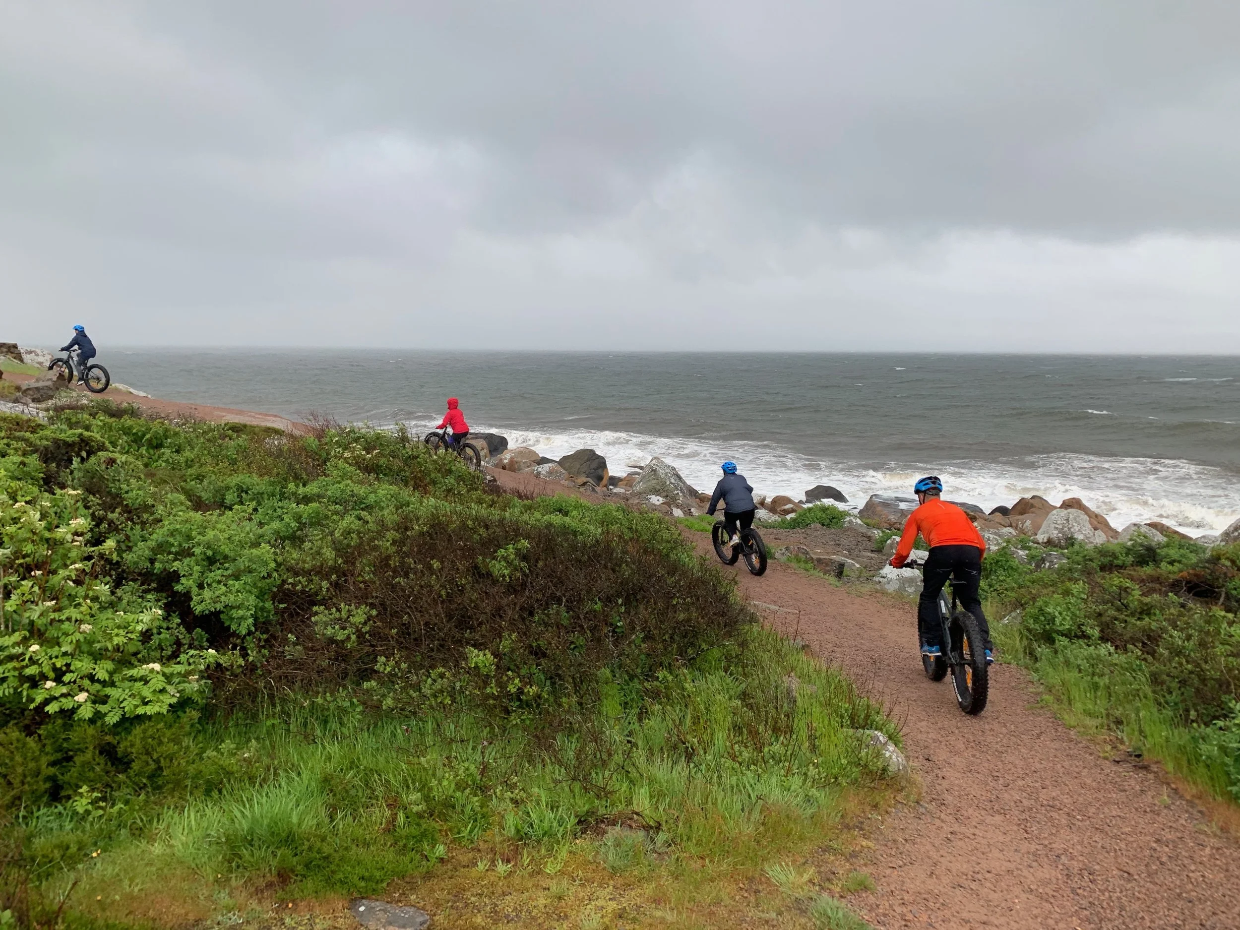Vi skal ut på tur i et lettsyklet terreng. Det er ingen spesielt bratte eller lange bakker. Men, som vanlig langs kysten, så må du være forberedt på noe vind. Det føles alltid som motvind, selv om det er medvind.