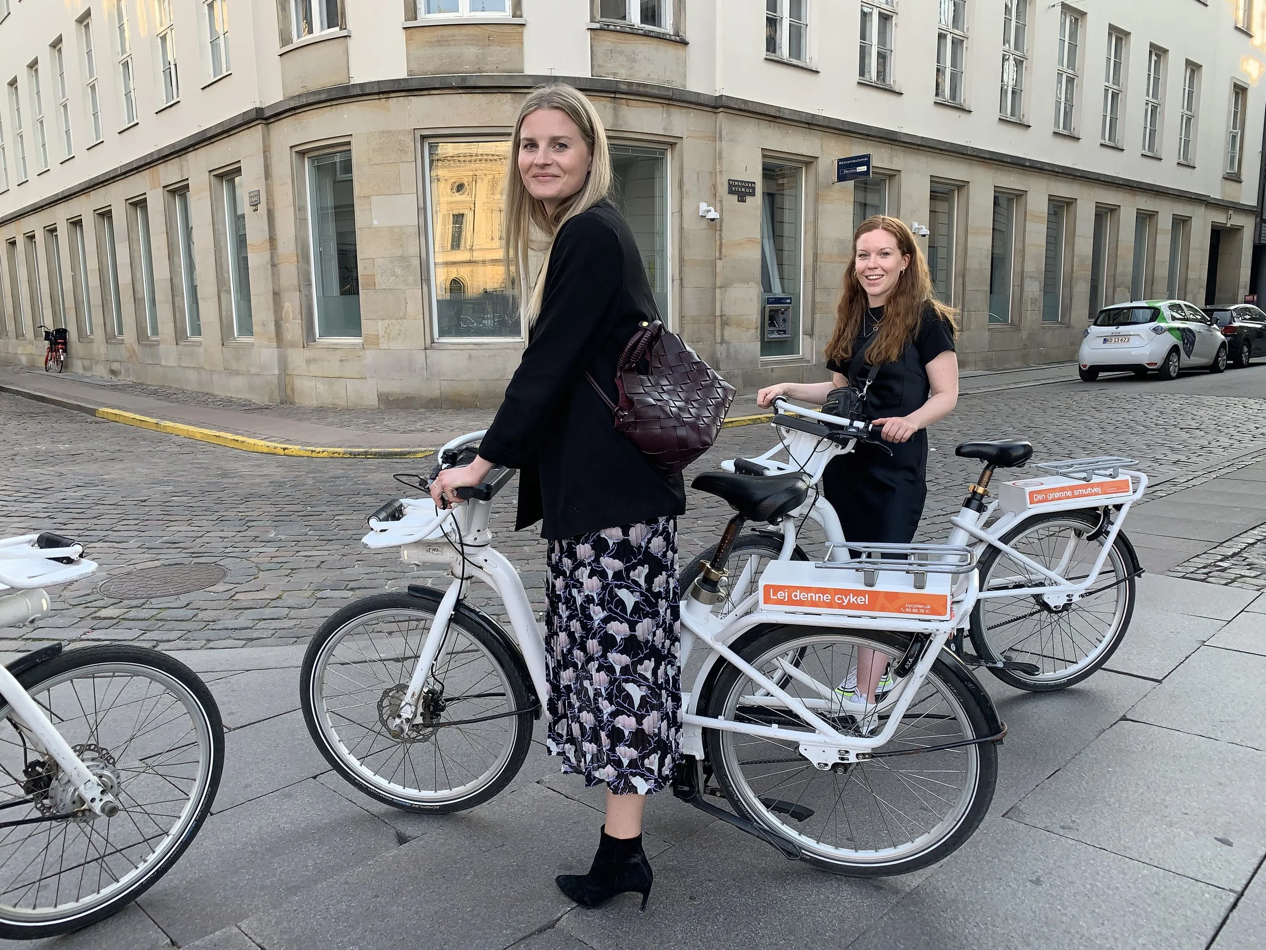 Selv om det er flatt over det meste av Danmark så er el-sykkel utrolig behagelig. Jeg anbefaler å leie via bycyklen.dk Det koster fra 15 DKK for 30 minutter. Og du finner sykler på disse stedene. Opprett en brukerkonto på forhånd, så er alt så enkelt. Du kan parkere og låse sykkelen underveis, men den må tilbakeleveres til spesielle ladestasjoner.