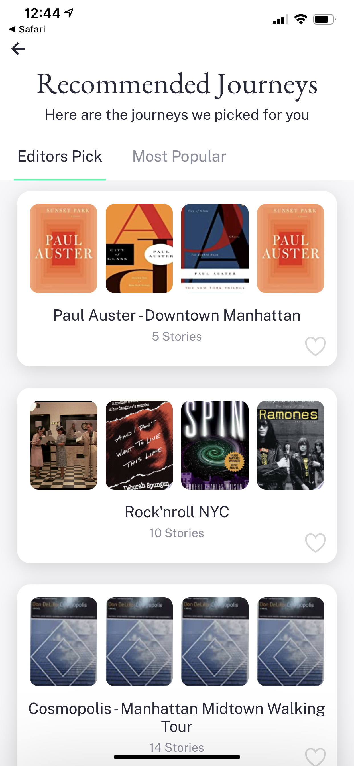 Appen gjør det mulig å se etter interessante steder i ditt nærområde eller å søke opp steder eller ruter, basert på sted, navnet til en forfatter, en bok eller andre filtre som filmer, musikk eller historie. Det betyr at du kan gjøre alt fra å få tips om en spasertur i Central Park som tar deg gjennom berømte scener fra litteraturhistorien til å se historiske steder .