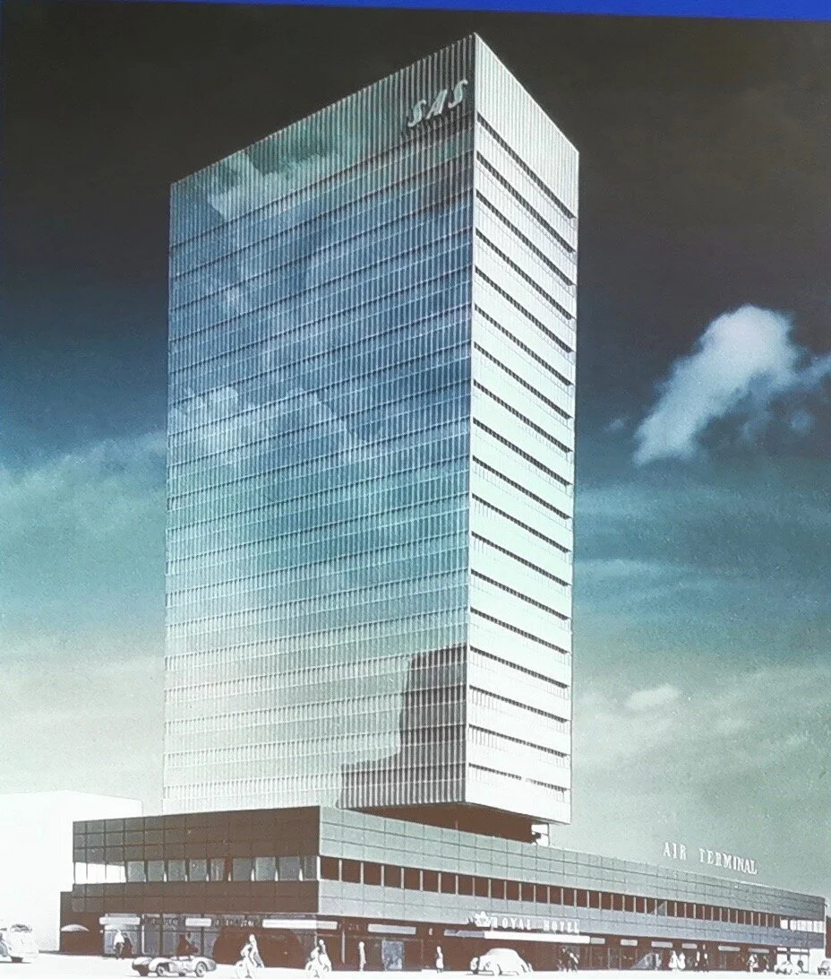 Da SAS innviet sin nye rute mellom USA og Skandinavia på 1950-tallet, ble det feiret med et bygg som kunne vise omverdenen det beste av skandinavisk design. Oppgaven var å designe en bygning som både var et luksushotell, et reisebyrå og en terminal hvor passasjerene kunne sjekke inn før de kjørte til flyplassen. Oppdraget gikk til den visjonære arkitekten Arne Jacobsen (1902-1971).