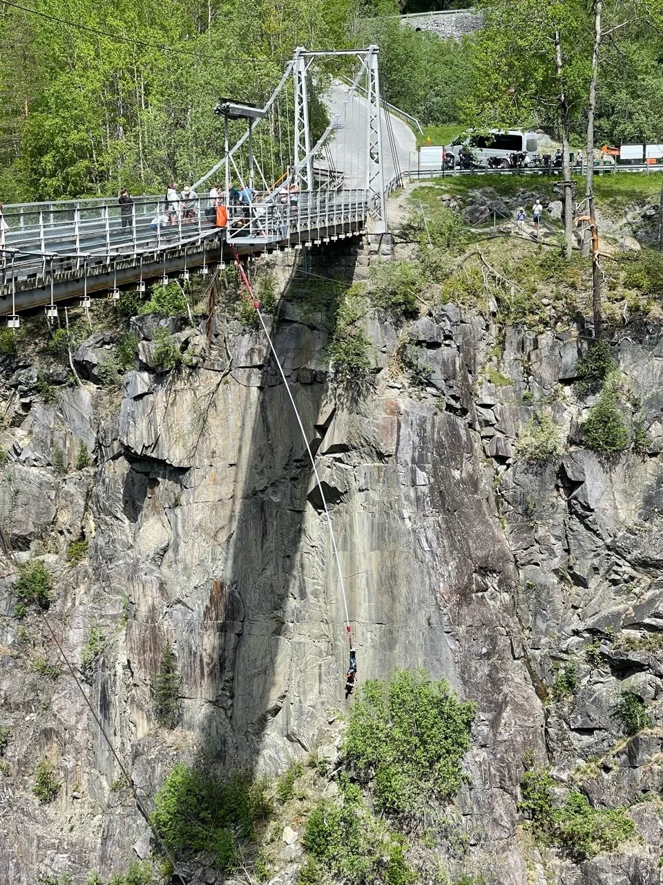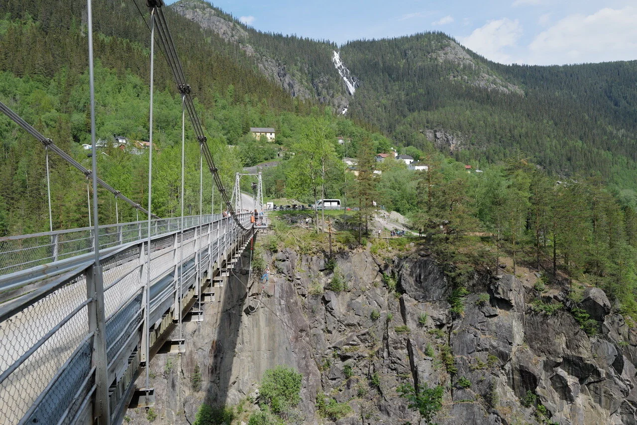 Turen opp til kraftverket går fra parkeringsplassen og over Vemorkbrua. Her kan den som vil og tør, kaste seg utfor i strikkhopp. Pris per hopp: 980 kroner + masse mot.