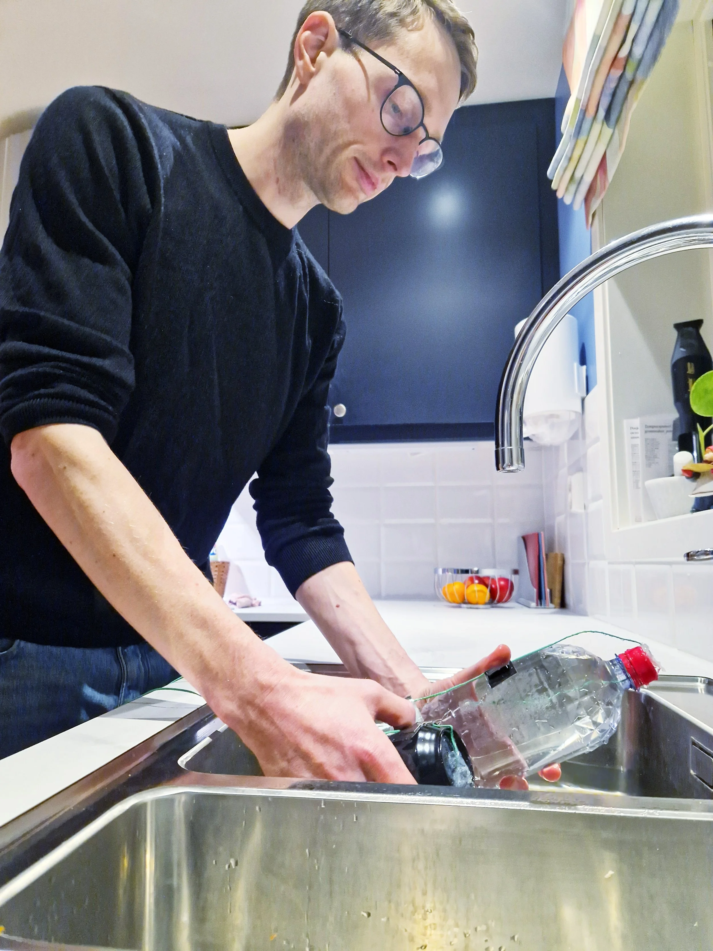 Kristian Solheim Thinn tester ut kjølemetoder på kjøkkenet sitt. Foto: SINTEF