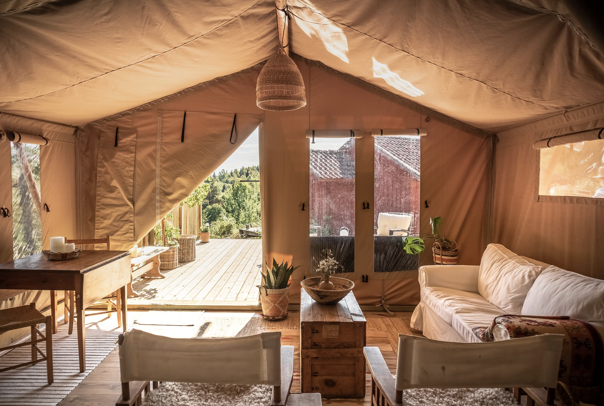 Røm fra hverdagens mas og jag til Remjeng Retreats glampingparadis og nyt en deilig ferie i idylliske omgivelser. Det såkalte okavango-teltet, som har plass til opptil fem personer fordelt på to soverom, er et helt særegent og uforglemmelig overnattingssted.