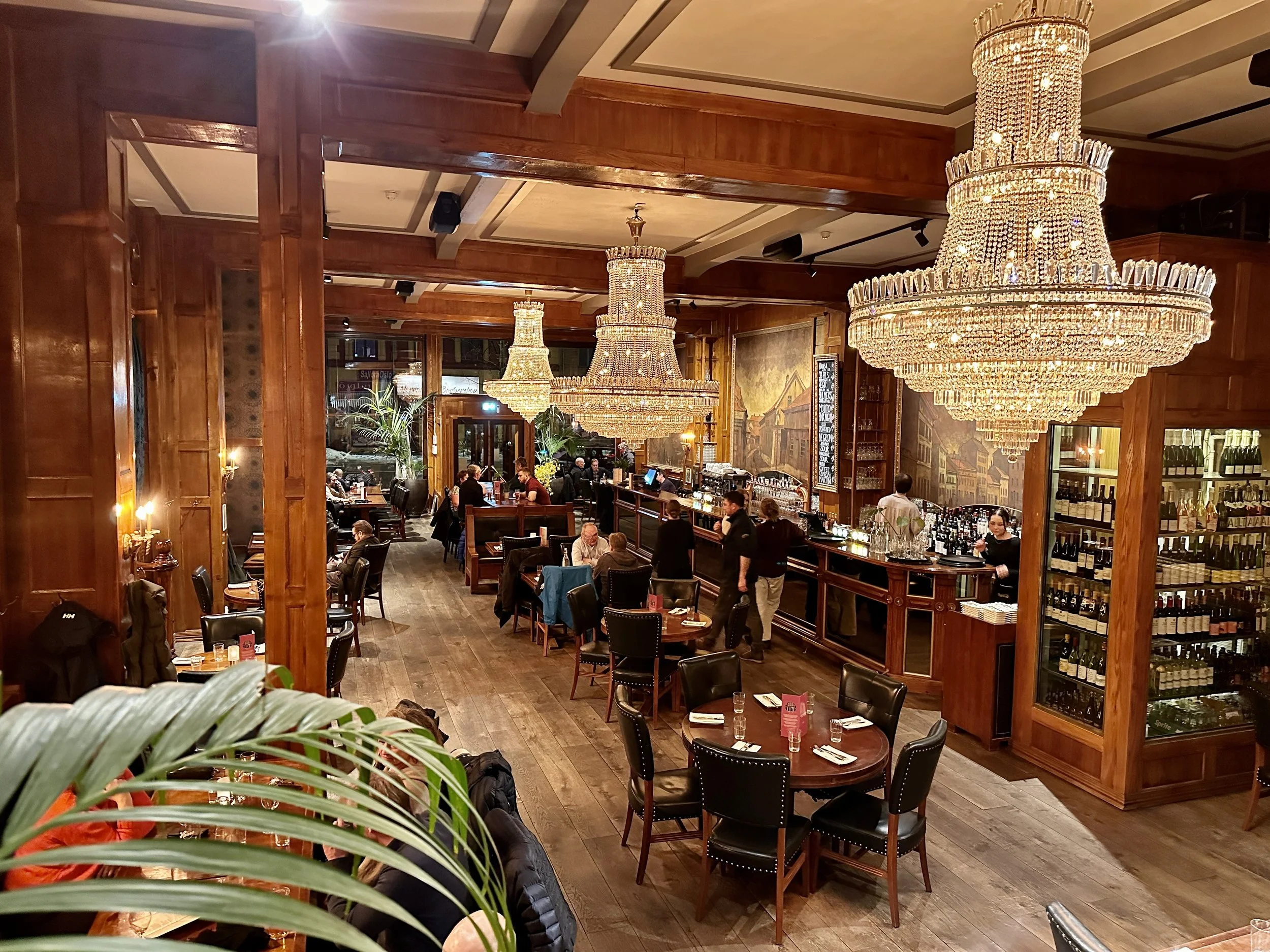 Vår ankomst på Olympen ved 19.30-tida en fredag kveld bar bud om ruskevær, i alle fall for den økonomiansvarlige ved stedet. Knapt en håndfull gjester innenfor, men allikevel et overveldende flott lokale med lysekroner som virkelig lyste flott opp i Oslokvelden. Vårt følge på 12 personer fant oss raskt til rette ved store bord og den positive servitøren var raskt på plass med flaskevann og glass til hele selskapet. Oppmuntrende start, tross alt. Men så brer deg seg uro rundt bordet.