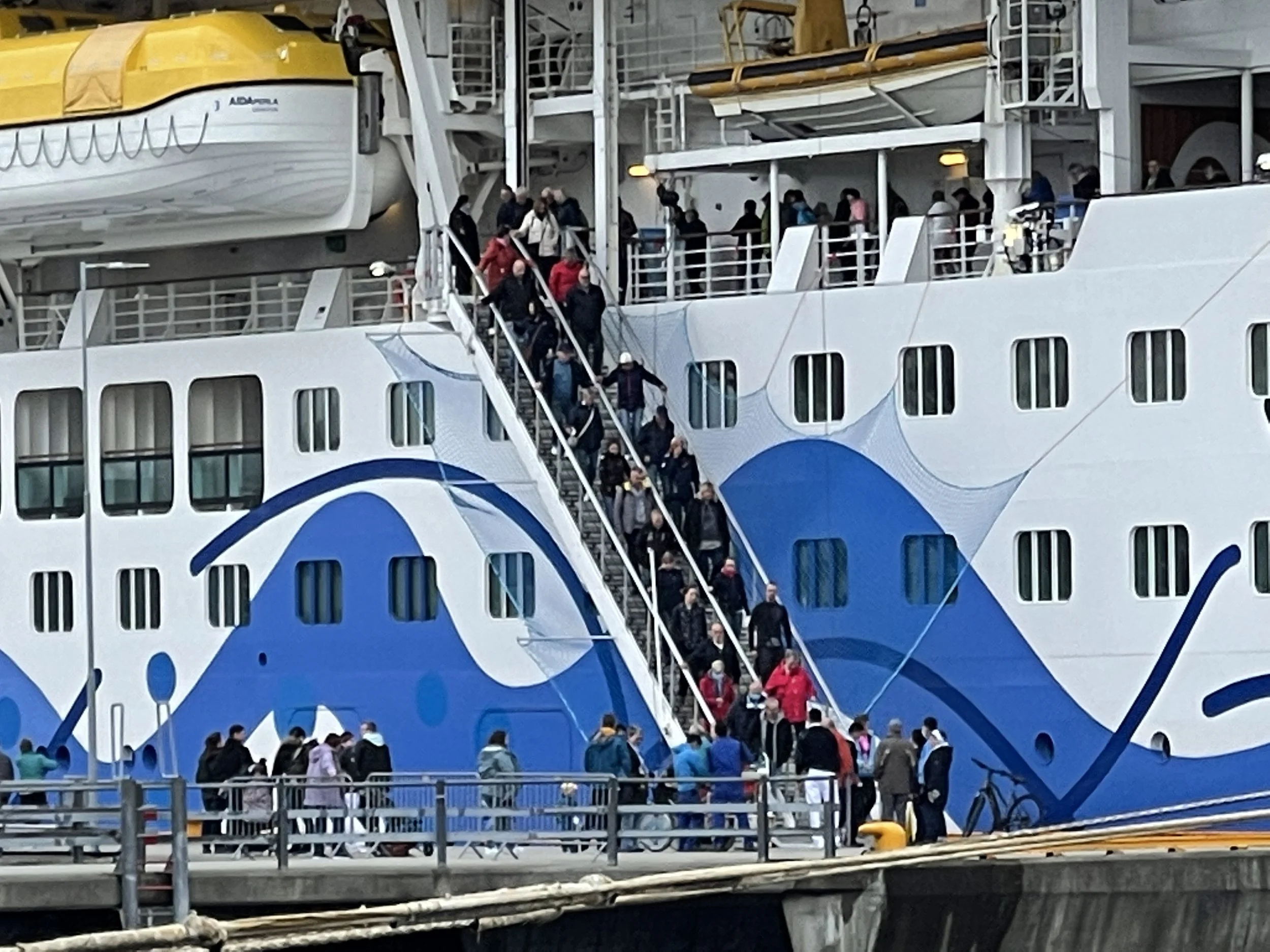 De går i land. Men hva gjør de her, og legger de igjen penger? Foto: Odd Roar Lange