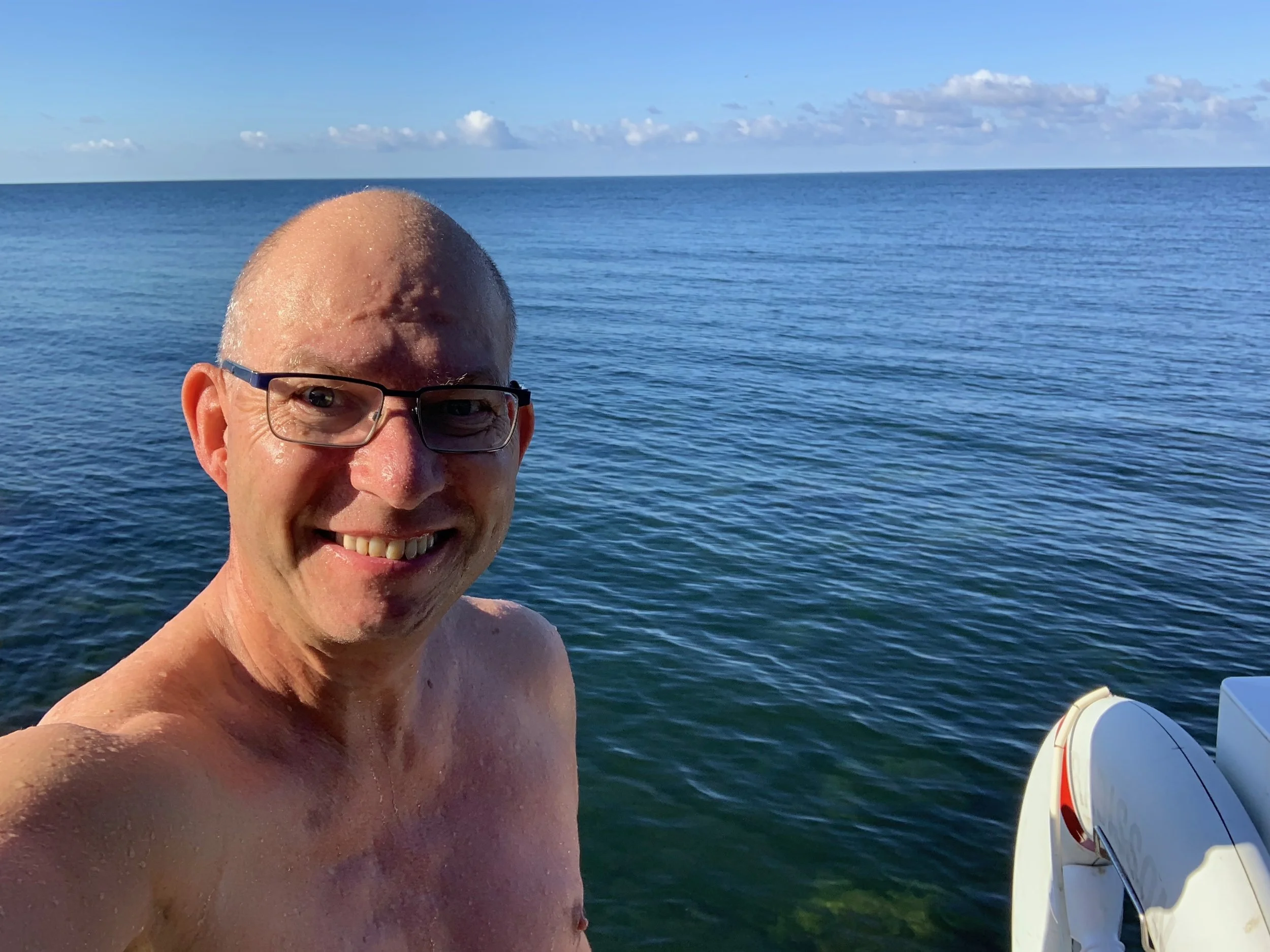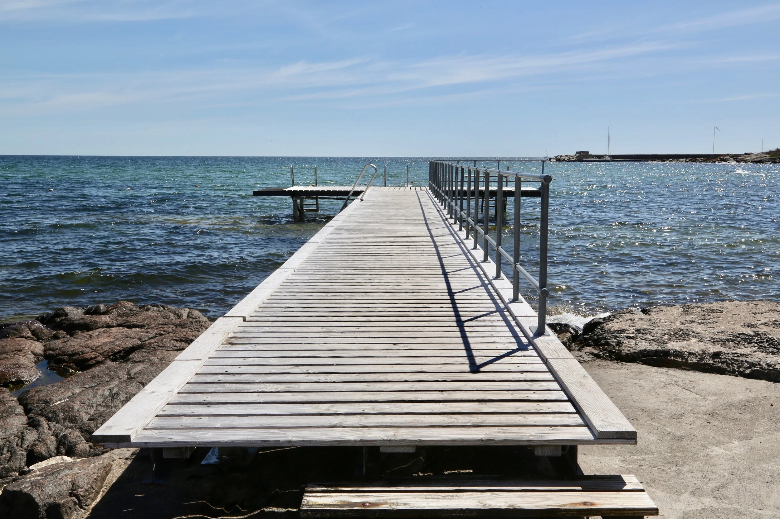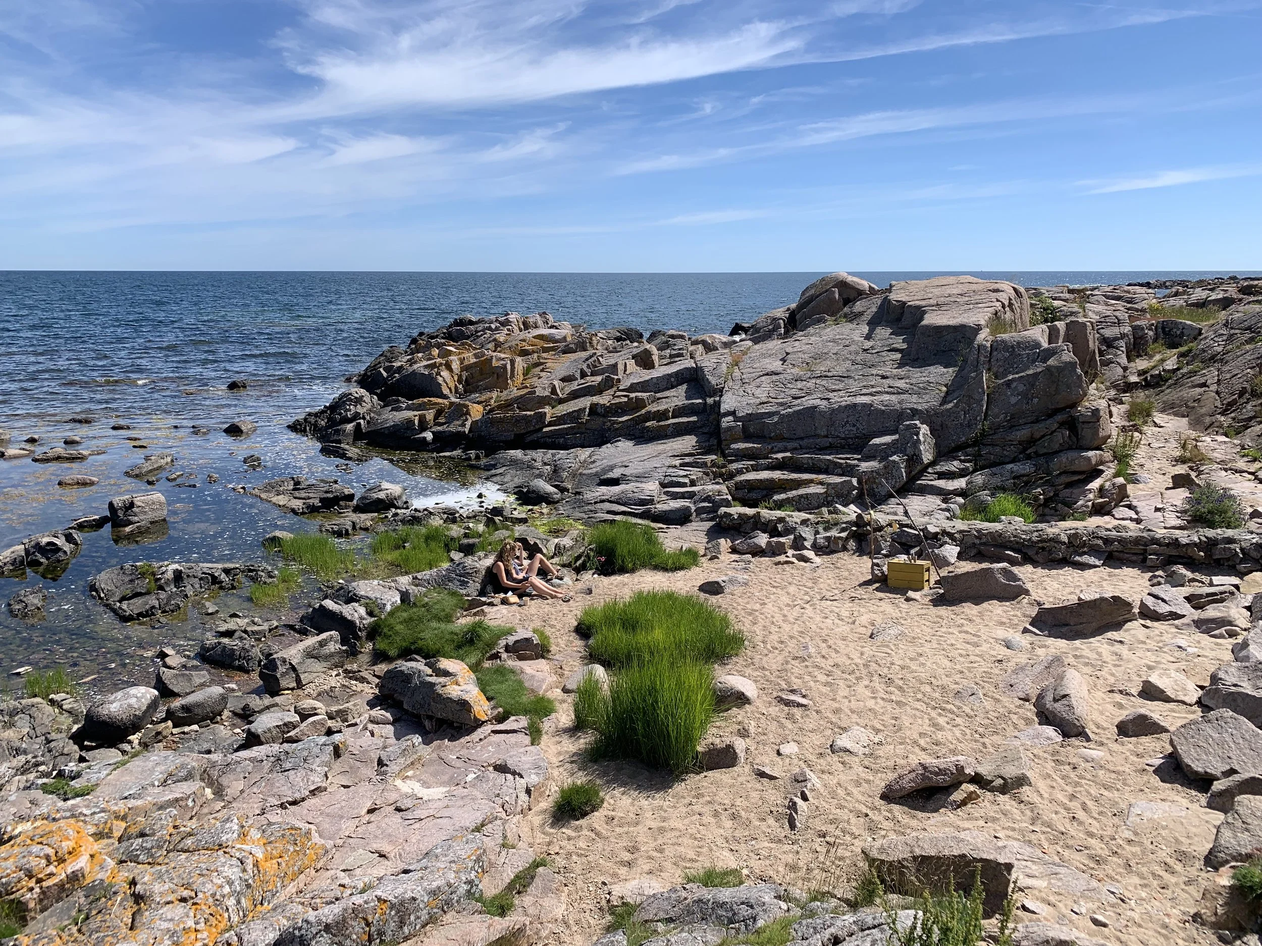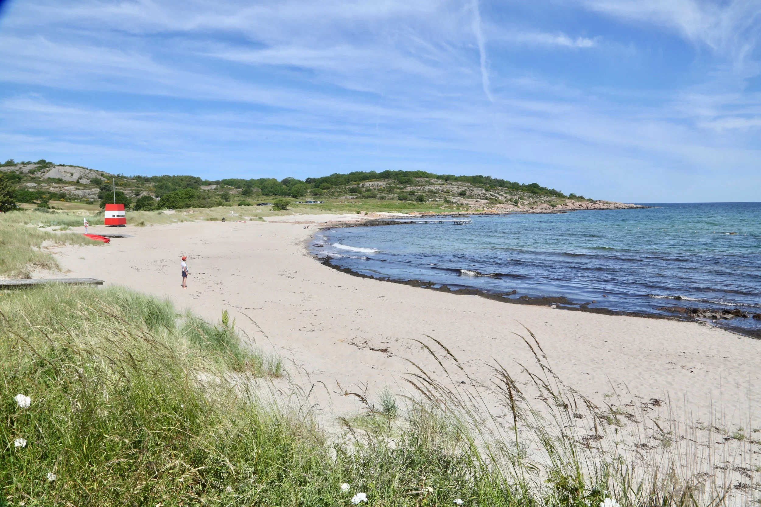 Øya har noen veldig små sandstrender, men bademulighetene er fine fra svabergene. Og det er egen badebrygge på Frederiksø (naboøya 2 min unna).