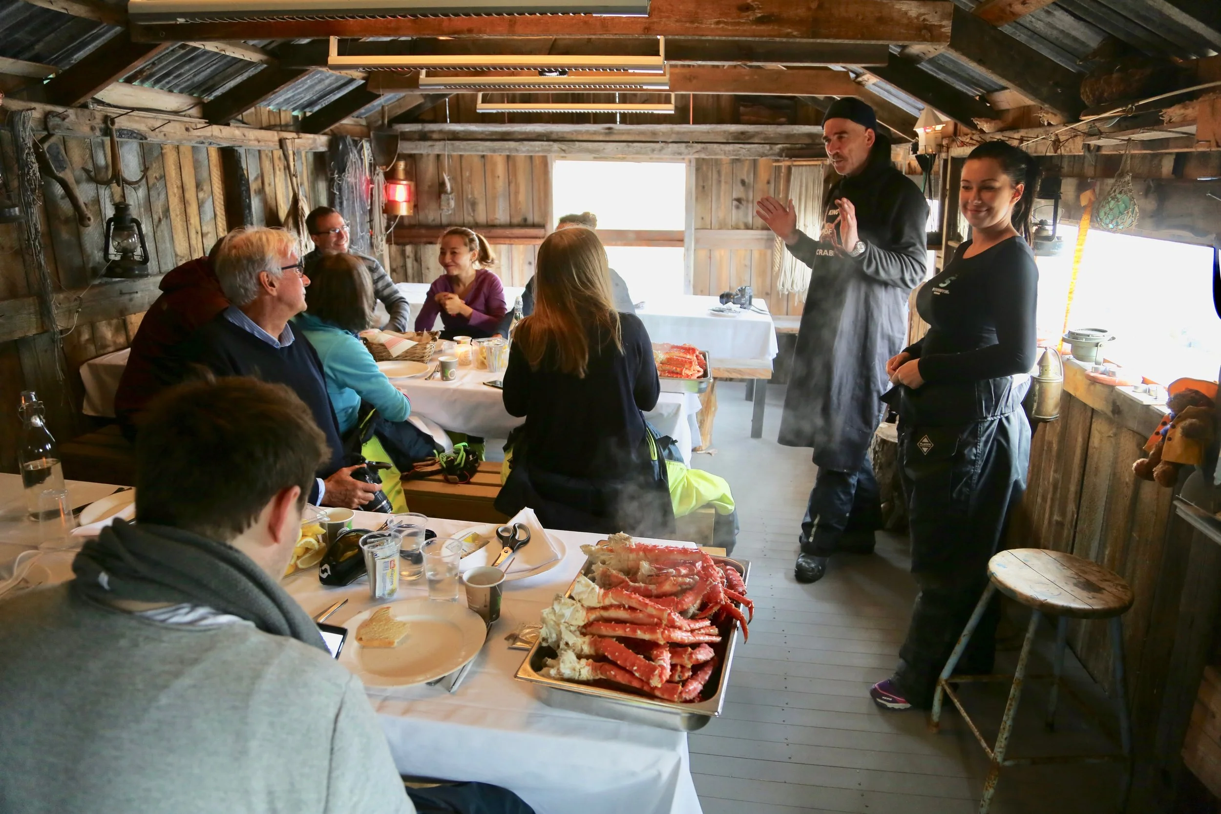 Kirkenes Snowhotel tar med gjester ut på kongebrabbefisking. Og etterpå kan fangsten spises - sammen med god historiefortelling.