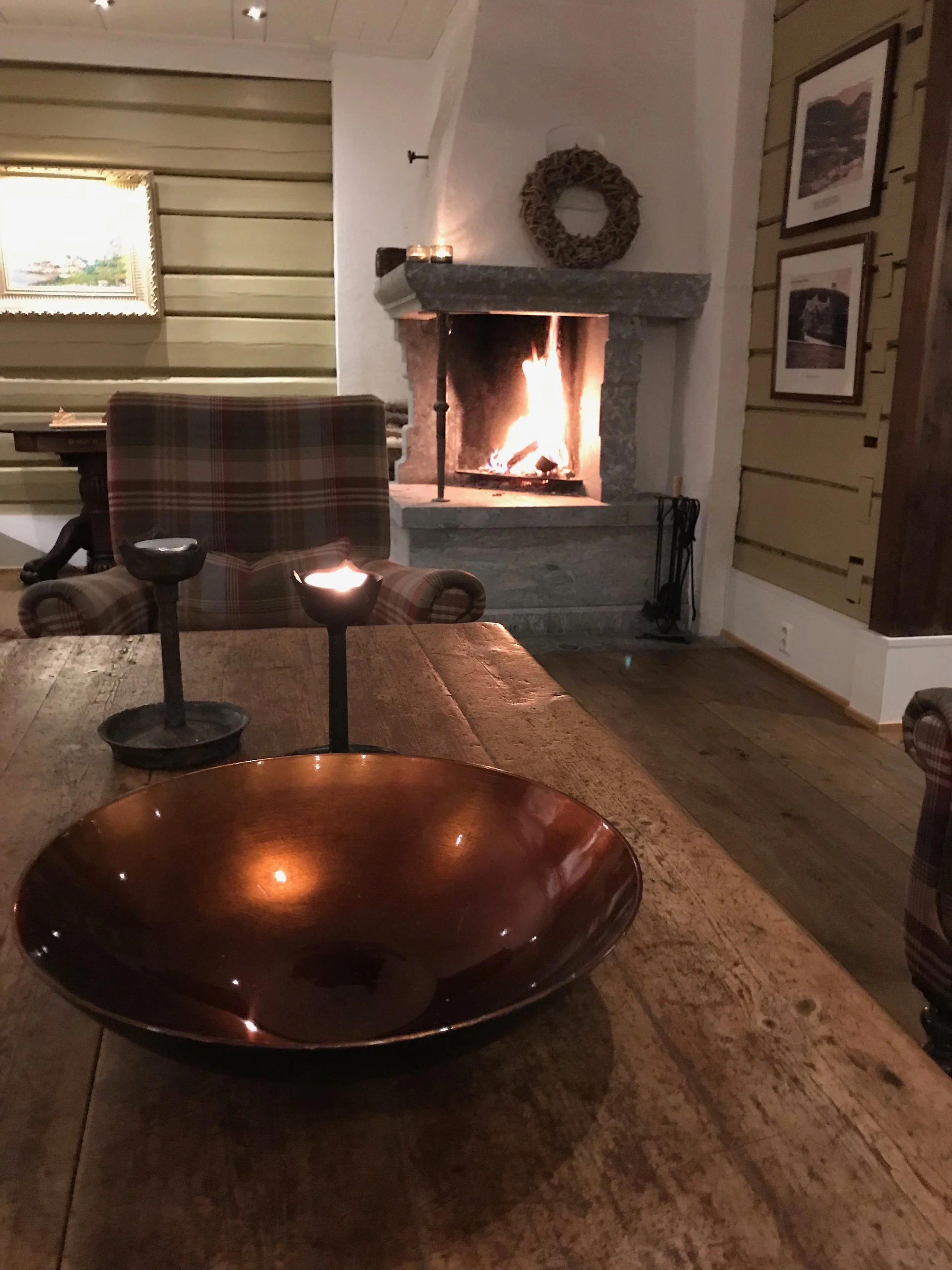 Det oppstod brann i pipa på hovedhuset ved hotellet. Og brannen startet ved 18-tiden.