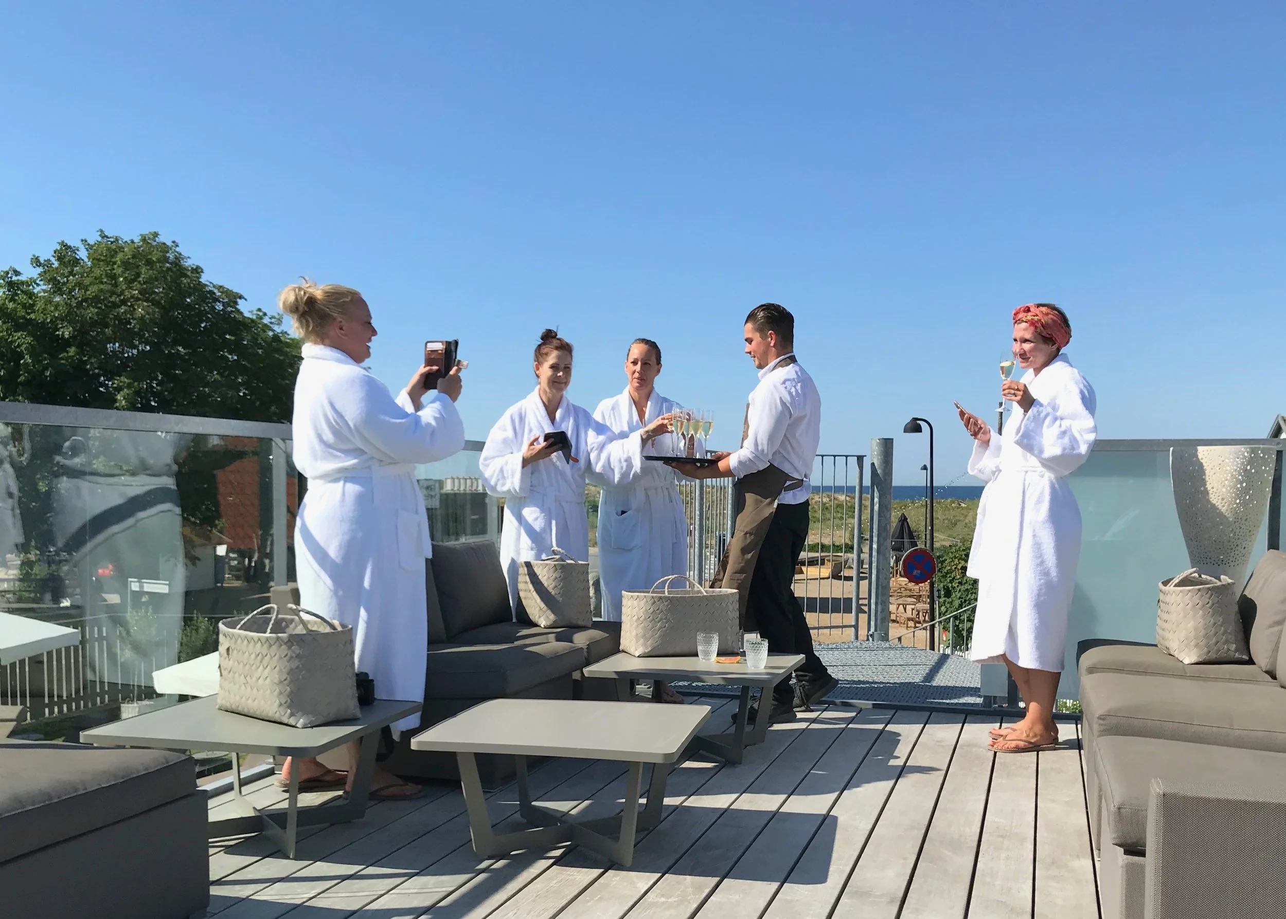 Start oppholdet på kurbadet med et glass Nicolas Feuilatte-champagne, og så er det bare å nyte opplevelsene inne og ute før dere avslutter med dagens sene lunsj (som heter frokost på dansk).