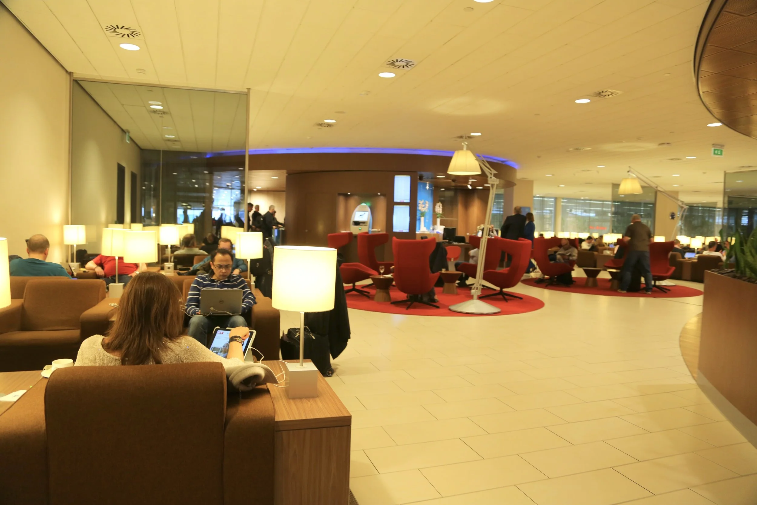 God plass: Lounge med god plass og gode stoler er rett og slett perfekt på flyreiser. Foto: Odd Roar Lange