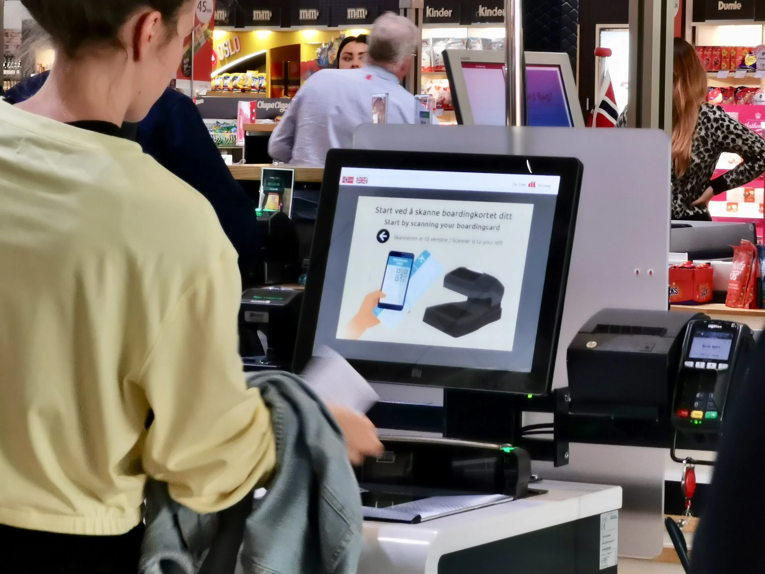 Og nå kan handlende velge selvbetjeningskasser ved Oslo lufthavn.