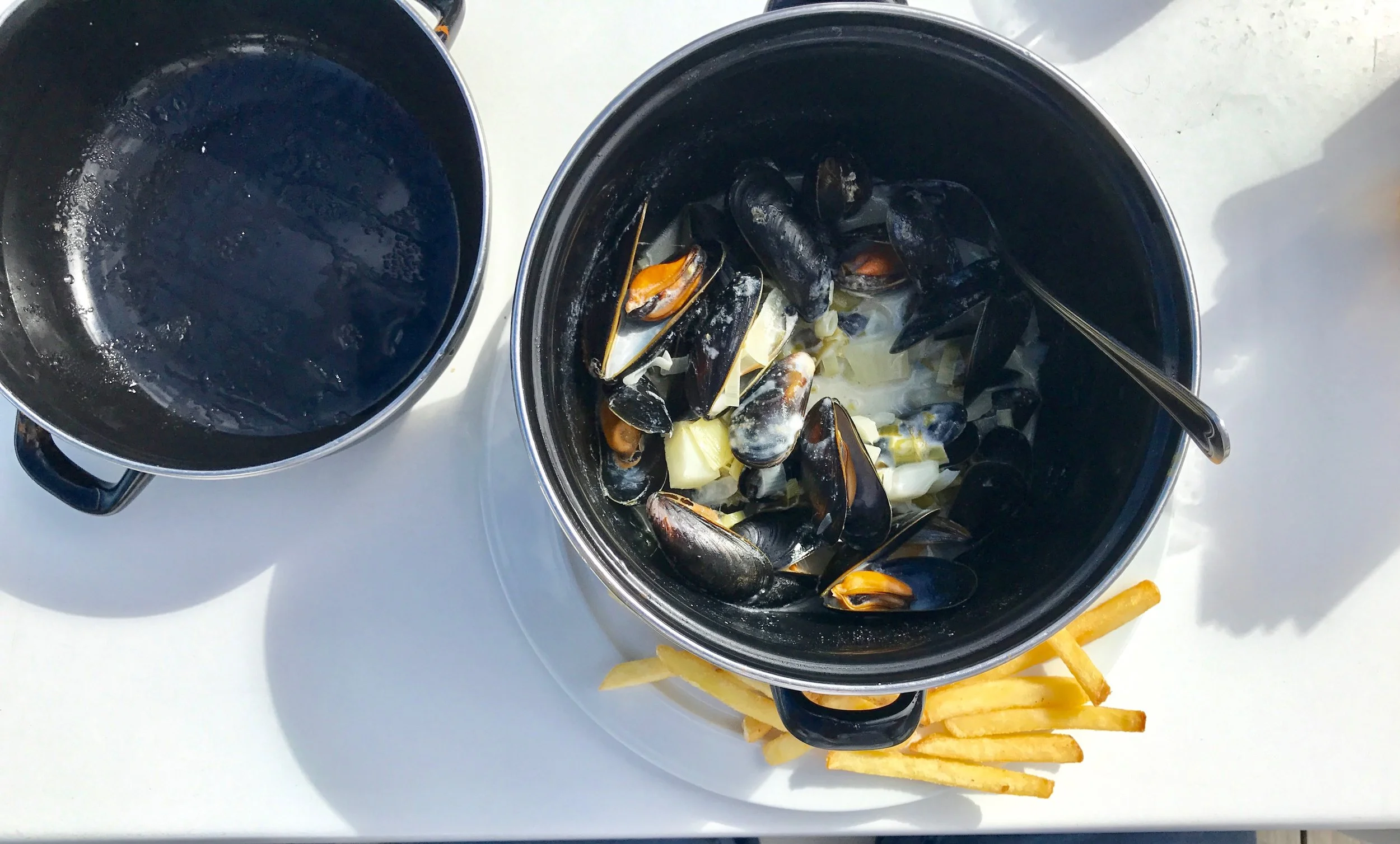 Blåskjellene var gode, bare synd det var så altfor få. Og pommes frites-ene kunne med fordel vært presentert mer delikat enn å ligge som en haug på serveringstallerkenen, delvis under blåskjellgryta.
