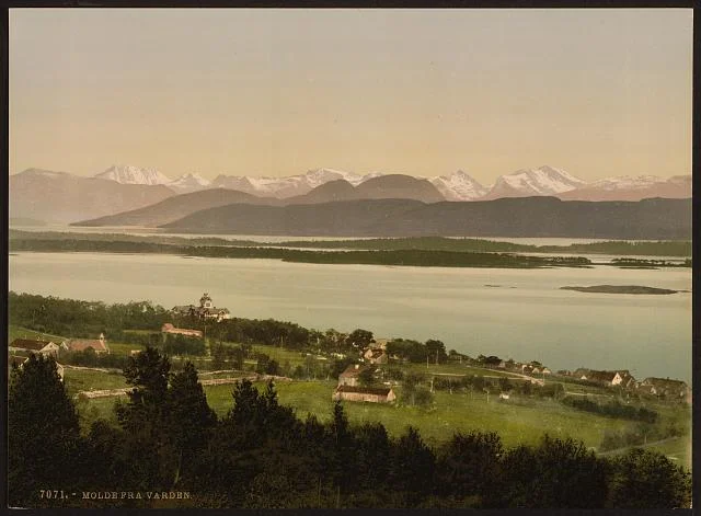 Disse fargebildene fra Molde er tatt for mer enn 120 år siden. Lenge før det var mulig å ta fargebilder som i dag. Men ved hjelp av fototeknikken Photocrome har bildene farger som gjør at fotoene fra sort-hvitt-alderen ligner på bilder tatt idag. Bildene er hentet bildebasen til Library of Congress.