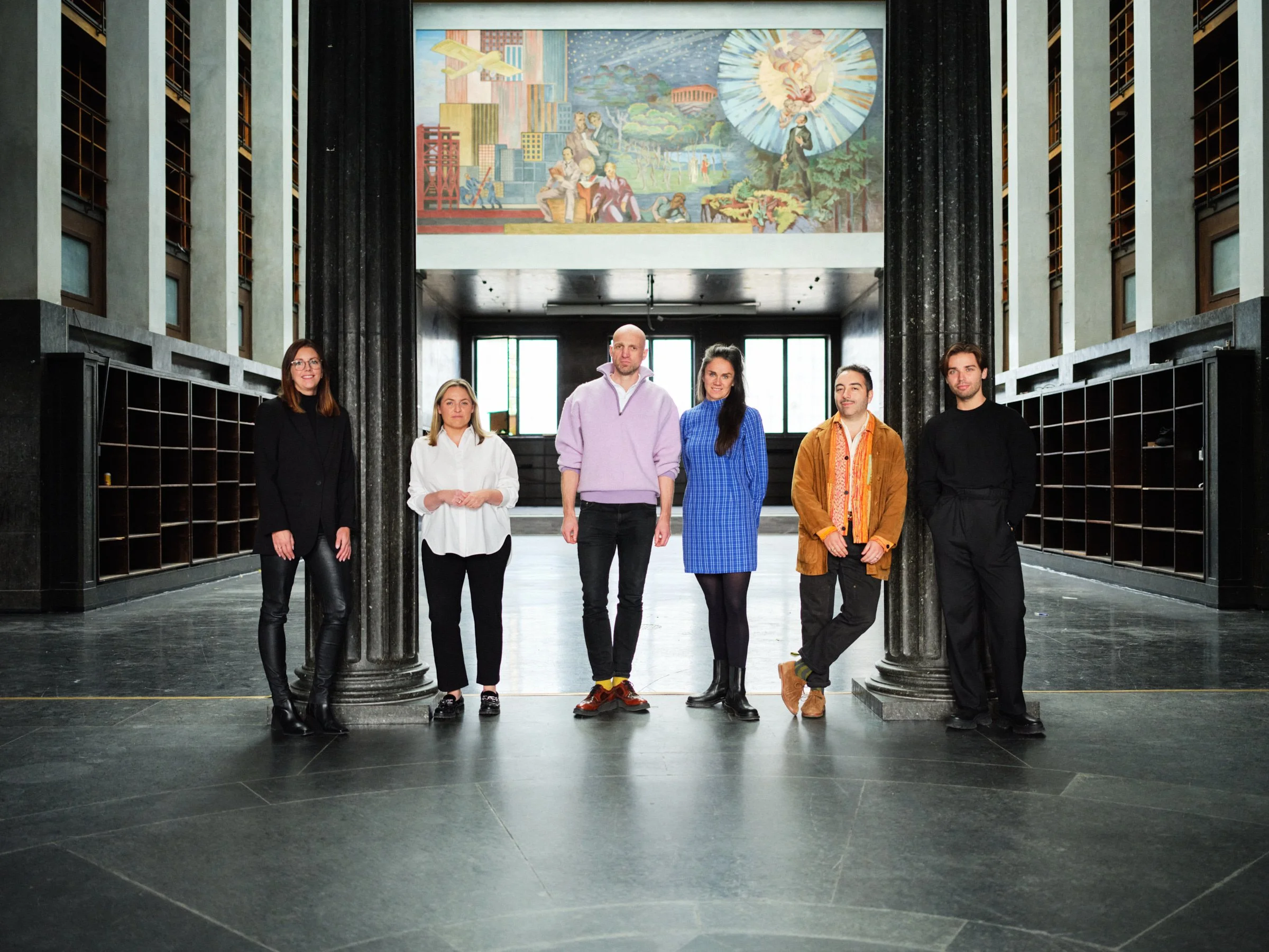 Fresken «Teknikk, Vitenskap, Diktning» i hovedsalen er malt av Axel Revold (1887-1962) og vil skinne på nytt når bygget gjenåpner i 2027.