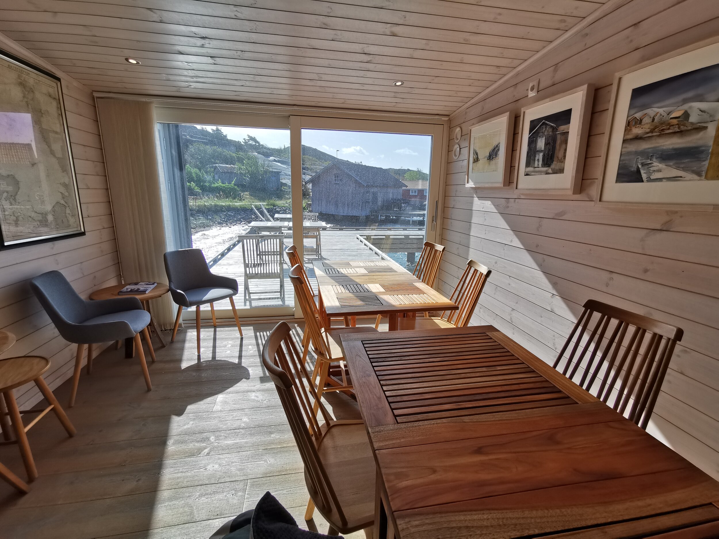 Du merker det allerede når du kommer ned bakken mot sjøen. De hvite kysthusene på venstre hånd, hvor gamle Evert bodde i det ene da han levde. Og når du kommer ned til sjøbodene som ligger på rekke og rad. Det første av dem er Everts gamle sjøbod, som ble overtatt av kameraten, oppgradert og ombygd til overnattingssted med flere soverom, restaurant/pub og en liten resepsjon. Alt pietetsfullt gjennomført og med tro mot den unike kysthistorien. Og da kameraten selv ble for gammel overlot han stedet til sønnene Per og Lars Karlsson, og Pers datter Hanna er daglig leder med bred kunnskap og lidenskap for havet og gastronomi - og vertskap. Det var et klokt valg, med andre ord.