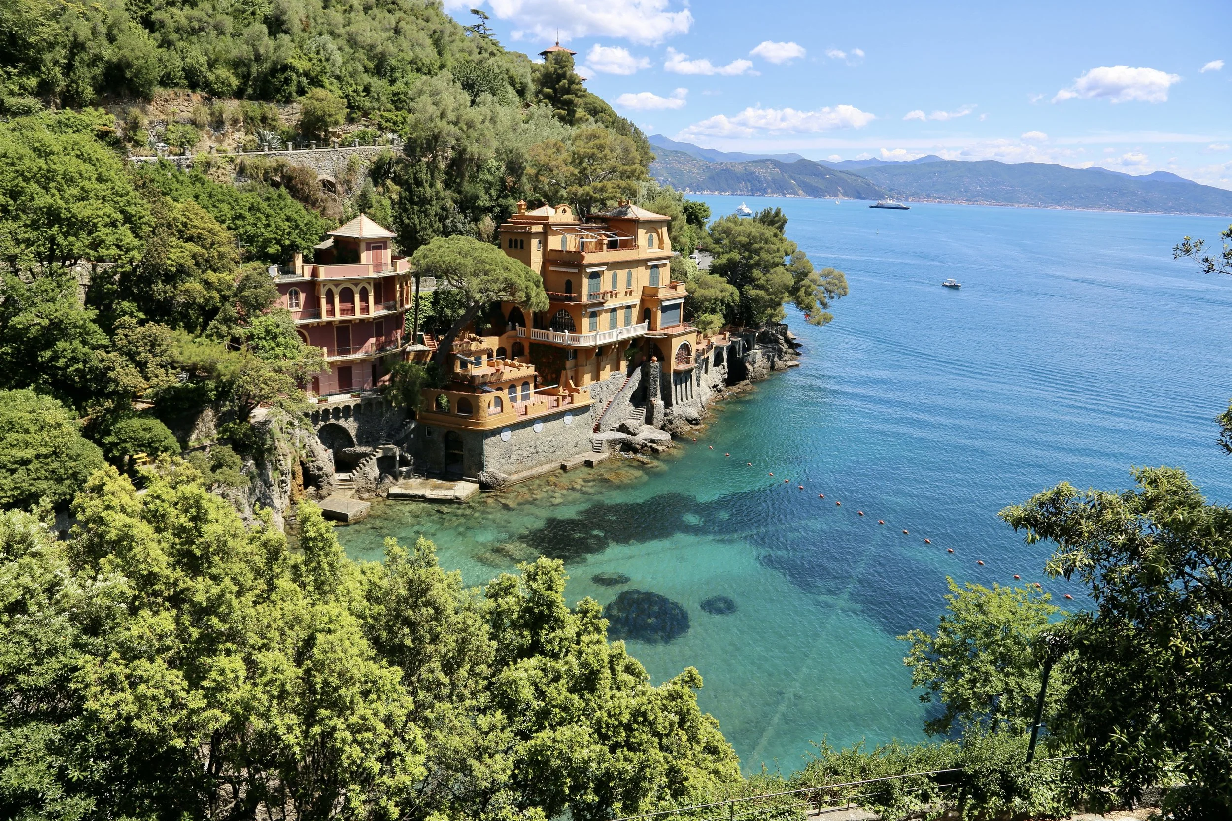 Og om det er vakkert nede ved havnen så skal du allikevel ta den ti minutters lange fotturen opp trappene og stien i fjellsiden i Portofino, hvor luksushotellet Belmond Hotel Splendido ligger.