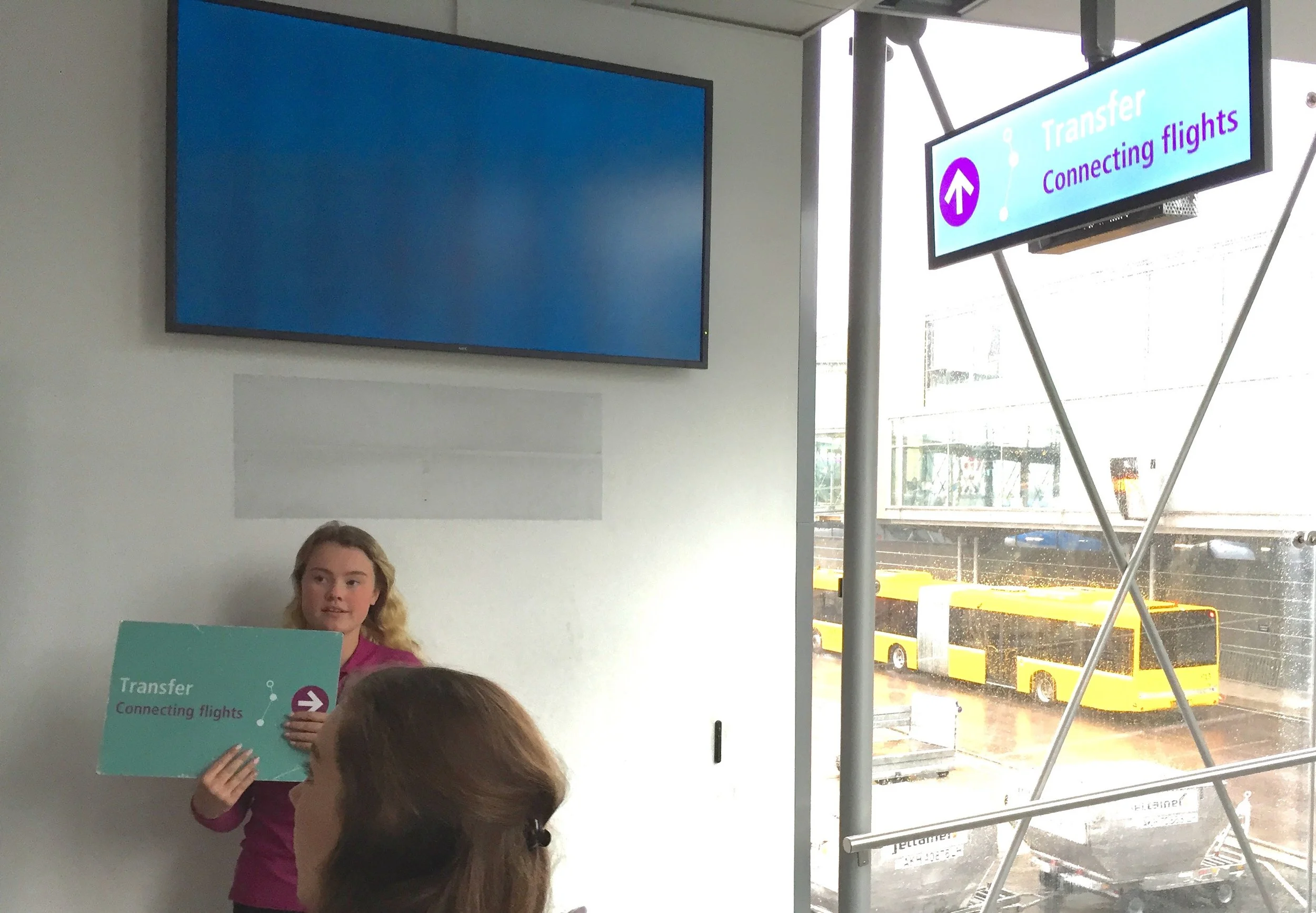 - Følg skilting videre til gaten din og fly videre dit du skal.