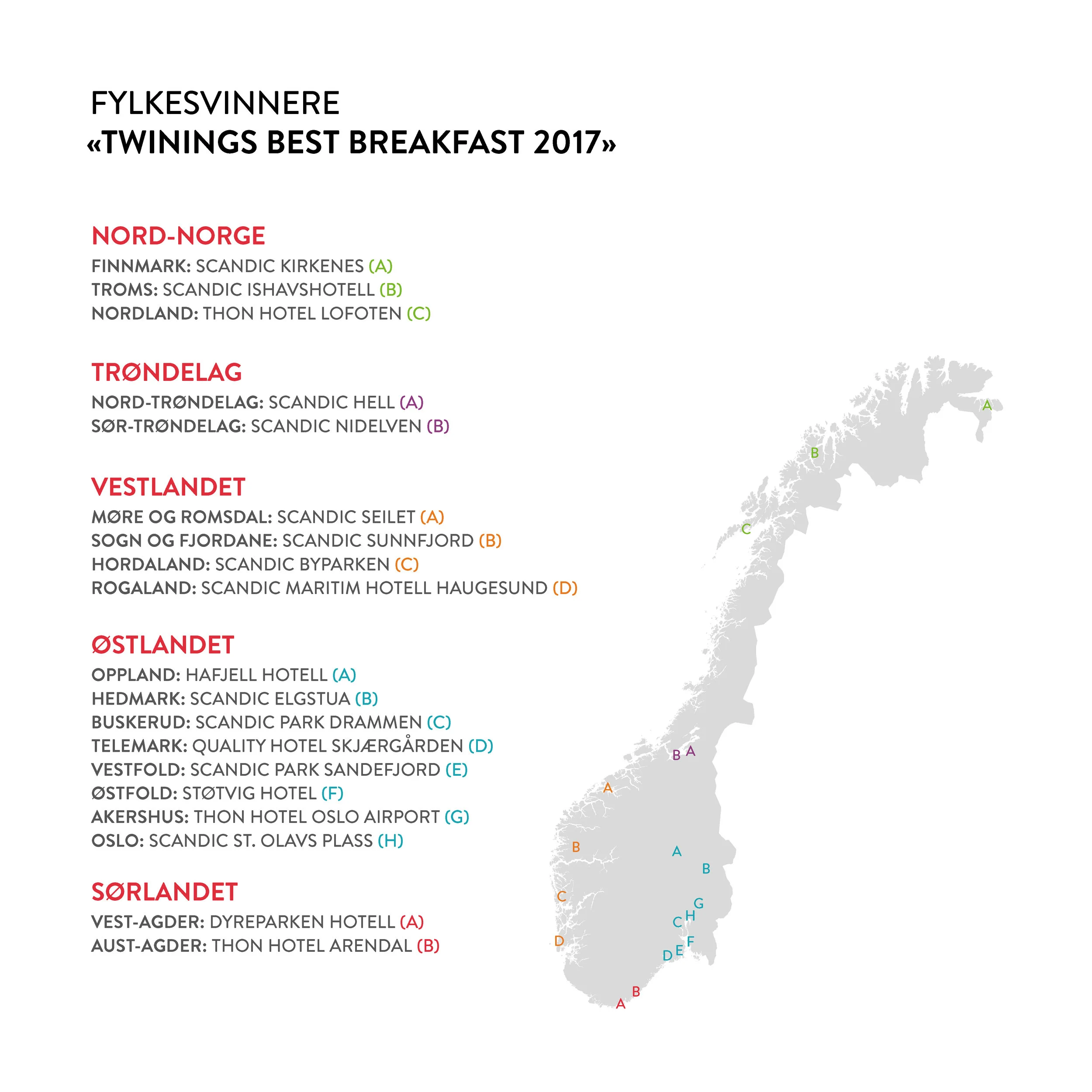 Komplett liste over fylkesvinnerne i Norges beste frokost: