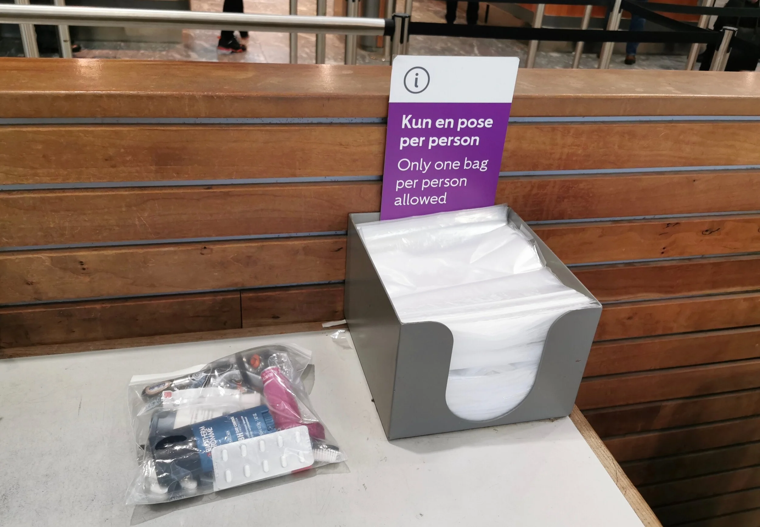 Tar du med deg en slik pose før sikkerhetskontrollen? Det gjør 2,7 millioner andre også. Foto: Odd Roar Lange