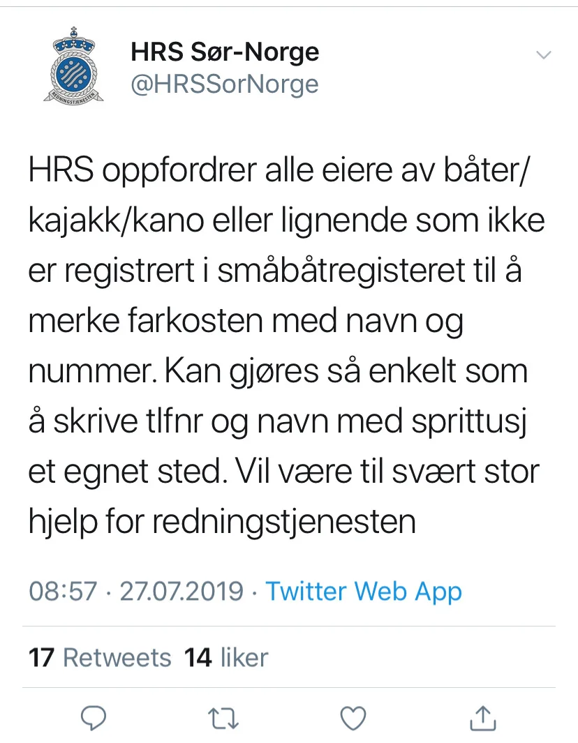 Merk båten din, gjerne med tusj eller annen måte. Og det er et enkelt ønske å innfri, ikke sant?