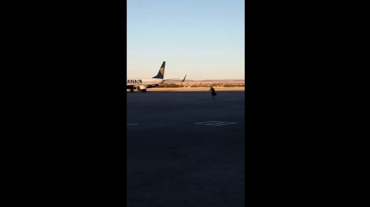 Filmen skal være tatt opp på mobiltelefon av en ansatt ved CC OO Ryanair & Lesma Handling Service som oppdaget mannen i 30-årene da han dukket opp ytterst på broen.