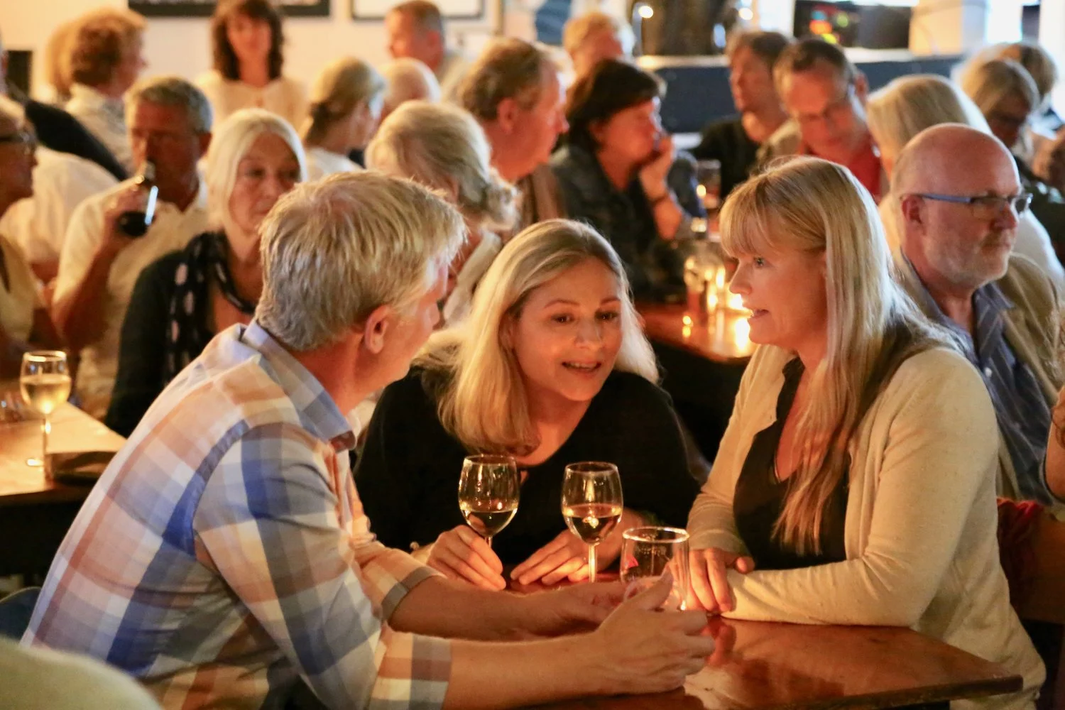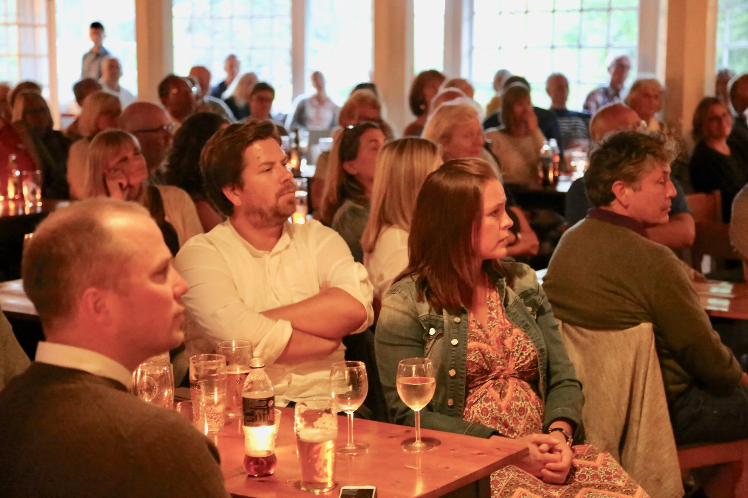 Sikkert over 70, men i sommerstemning og med smilet og glimtet som passer så godt til Gamle Ormelet. Det finnes ikke generasjonskløfter om sommeren. I alle fall ikke på Gamle Ormelet.