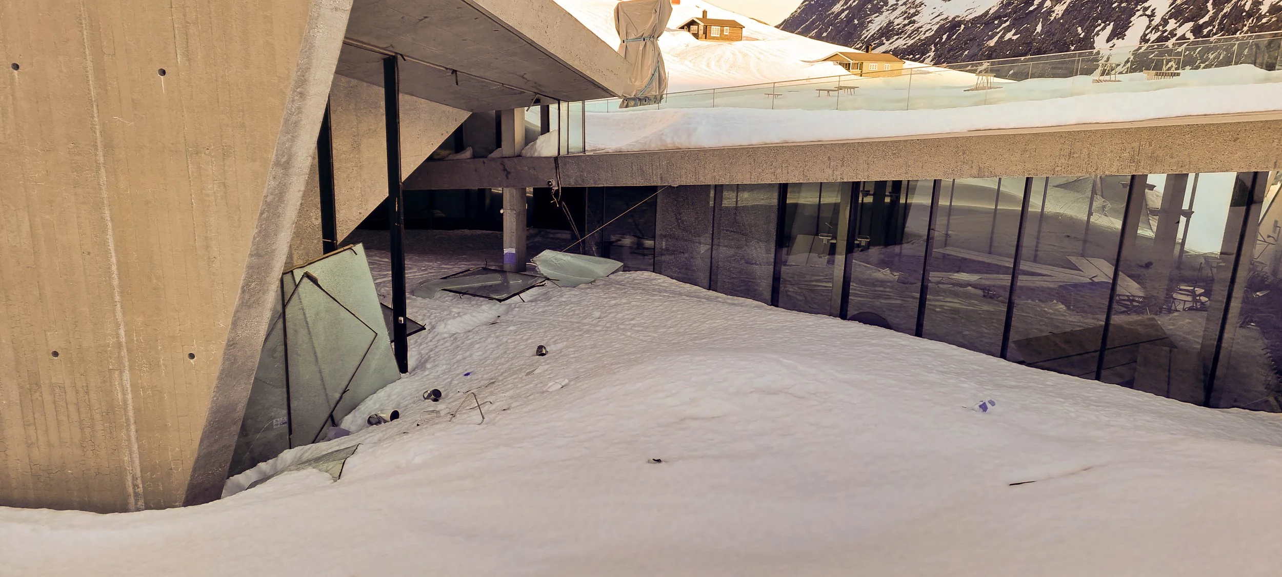 Store skader etter snøskredet, som traff kafeen på Trollstigen. (Alle foto: Dag Christian Ugseth, Møre og Romsdal fylkeskommune)