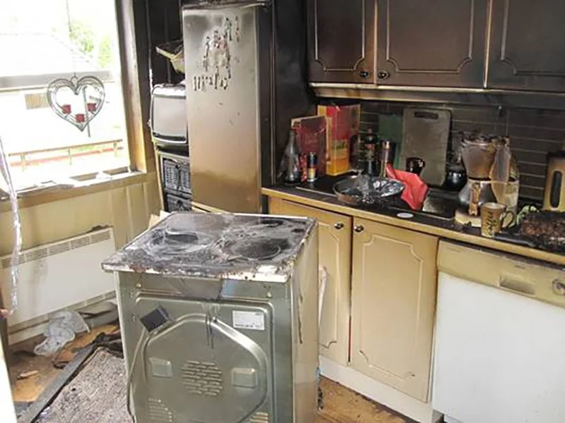 Et øyeblikks uoppmerksomhet var nok. Plutselig slo flammene opp fra gryta og flammene antente kjøkkenvifta, luftekanalen og kjøkkeninnredningen.