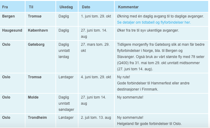 Dersom du vil fra Haugesund til København økes frekvensen fra tre til sju ukentlige avganger i perioden 27. juni til 14. august.