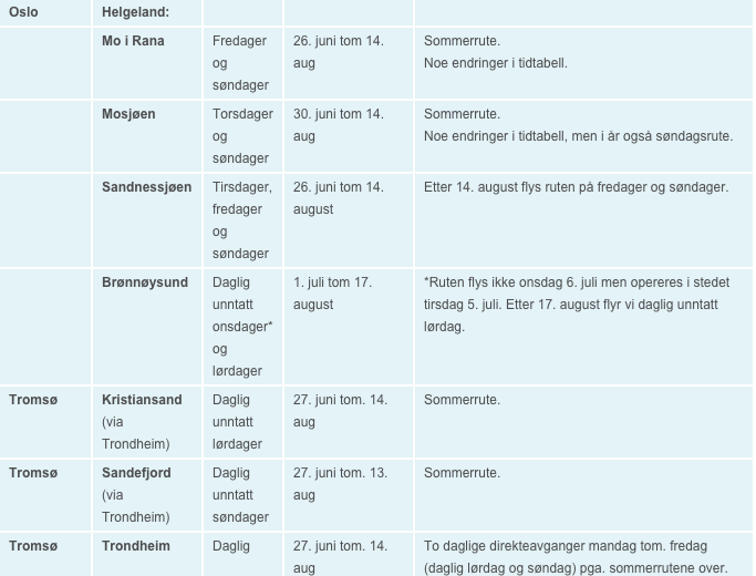 Ny rute fra Oslo til Trondheim på lørdager fra 2. juli til 13. august. Denne får forbindelse med sommerruter til Helgeland og dermed kan du oppleve den fineste delen av Norge - Helgelandskysten.