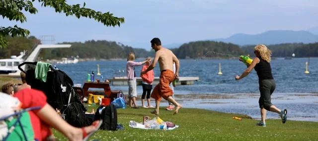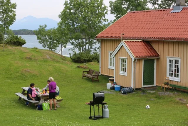 Her blir det i helgene fyrt opp gassgrill til felles bruk for alle. Utmerket!