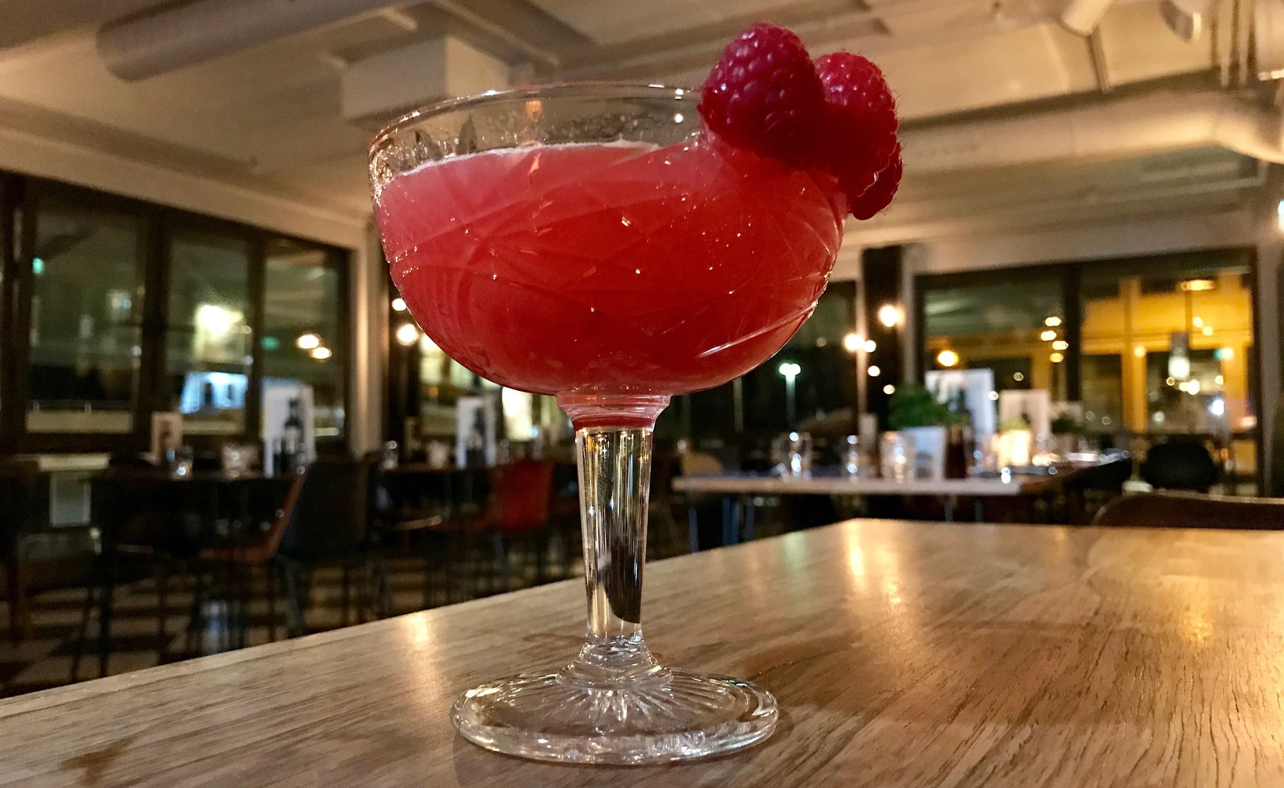 Slik gjør du det: Mudle bringebærene i en shaker, alt flytende tas i shakeren uten is, fyll deretter på med is og shake på nytt i 10 sek. Sile det hele over i et avkjølt vinglass.